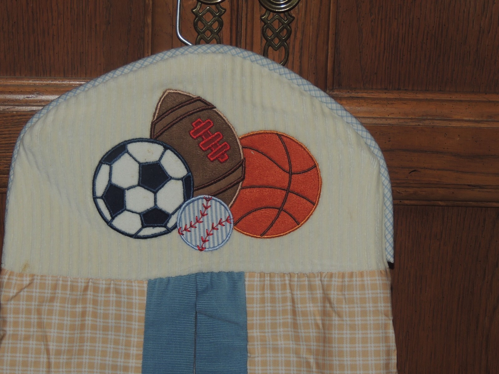 как выглядит LAMBS IVY SPORTS DIAPER STACKER BASKETBALL FOOTBALL SOCCER BASEBALL TAN BLUE фото