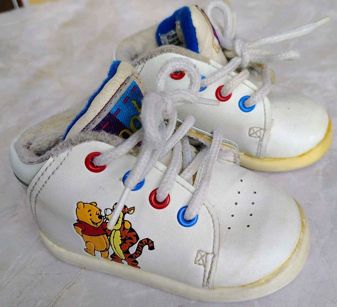 как выглядит Vintage Winnie The Pooh Baby Shoes Size 3 White Laced Disney Tigger HTF Toddler фото