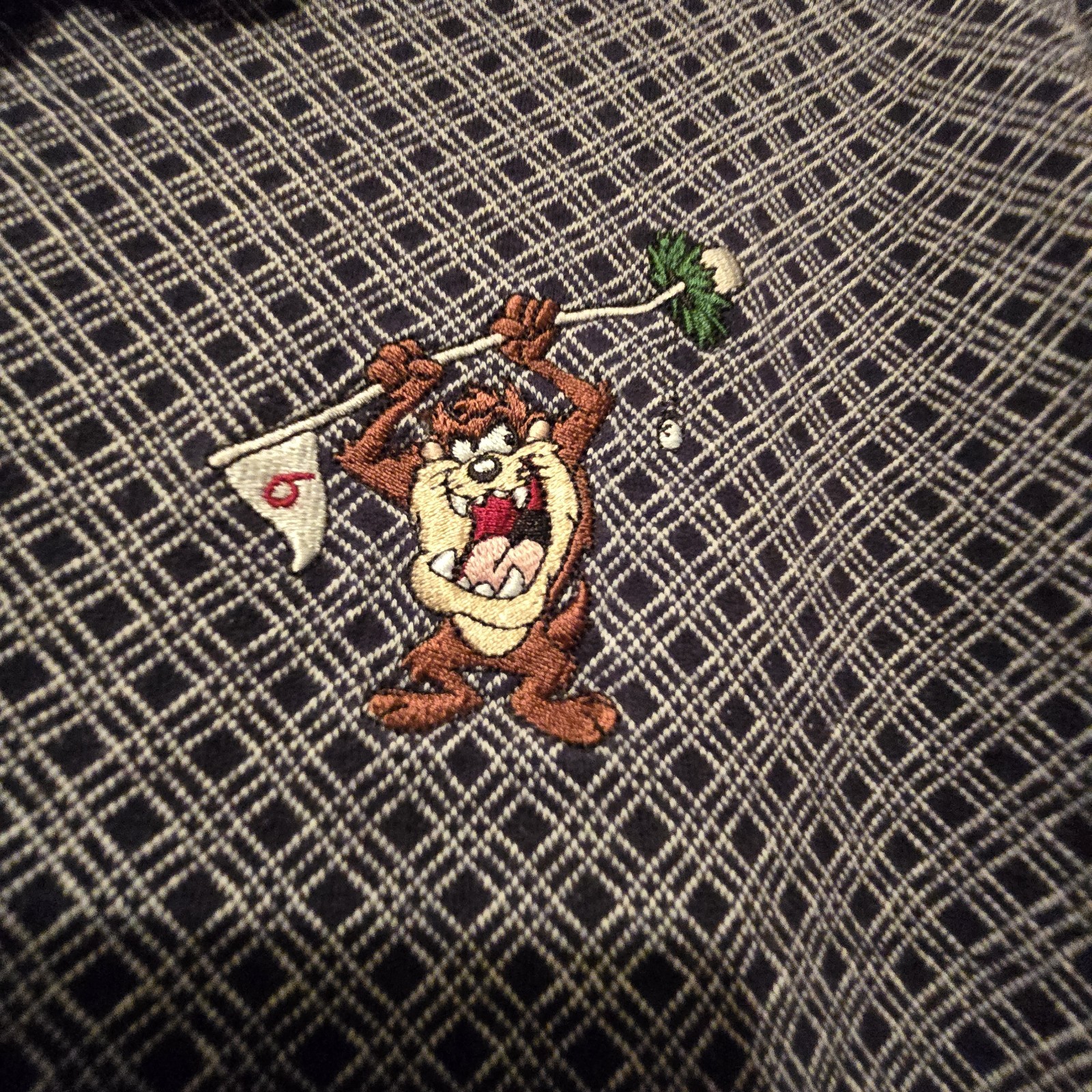 как выглядит Vtg 1999 Warner Bros Tasmanian Devil Taz Golf Polo Shirt XL Navy Looney Tunes фото