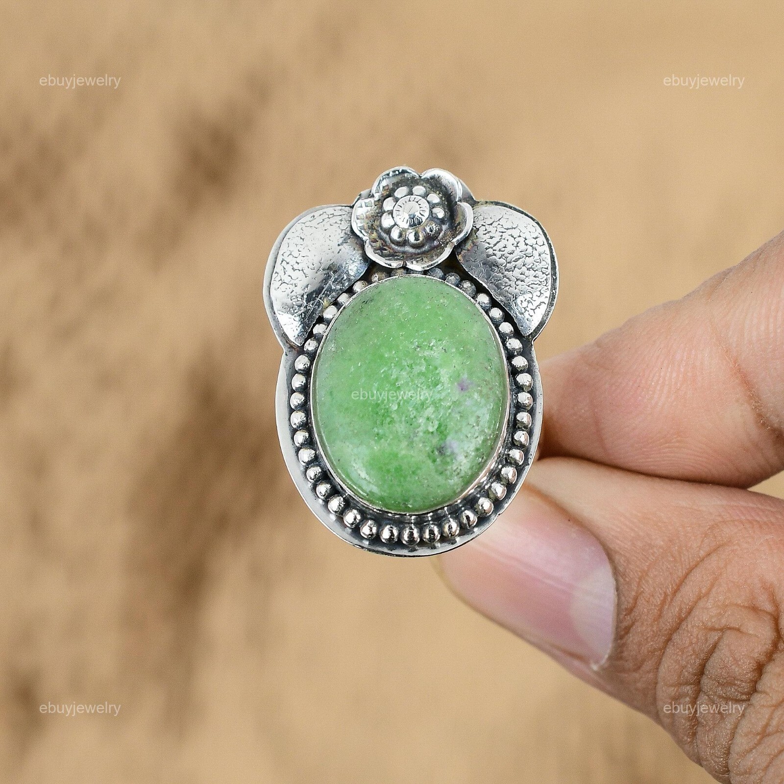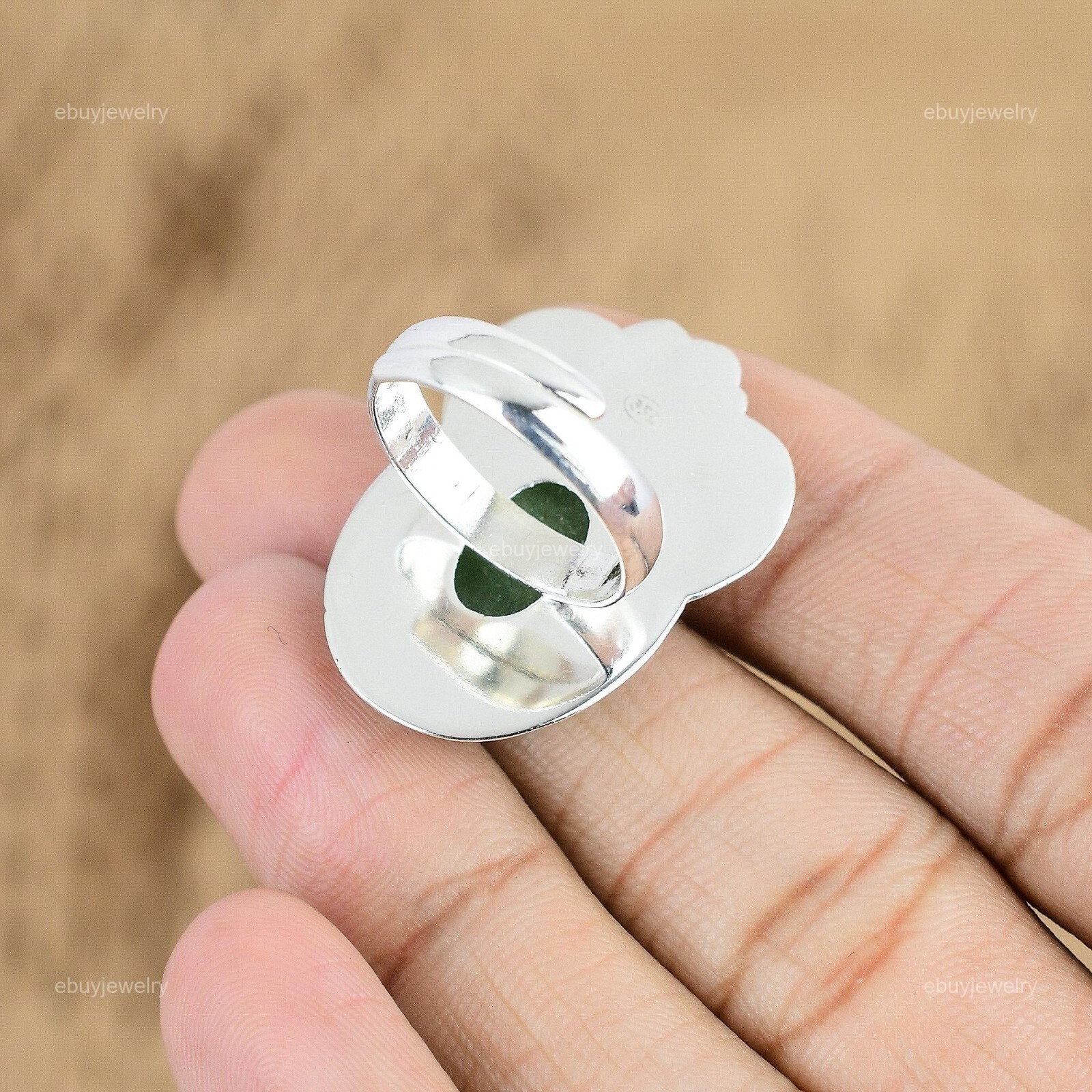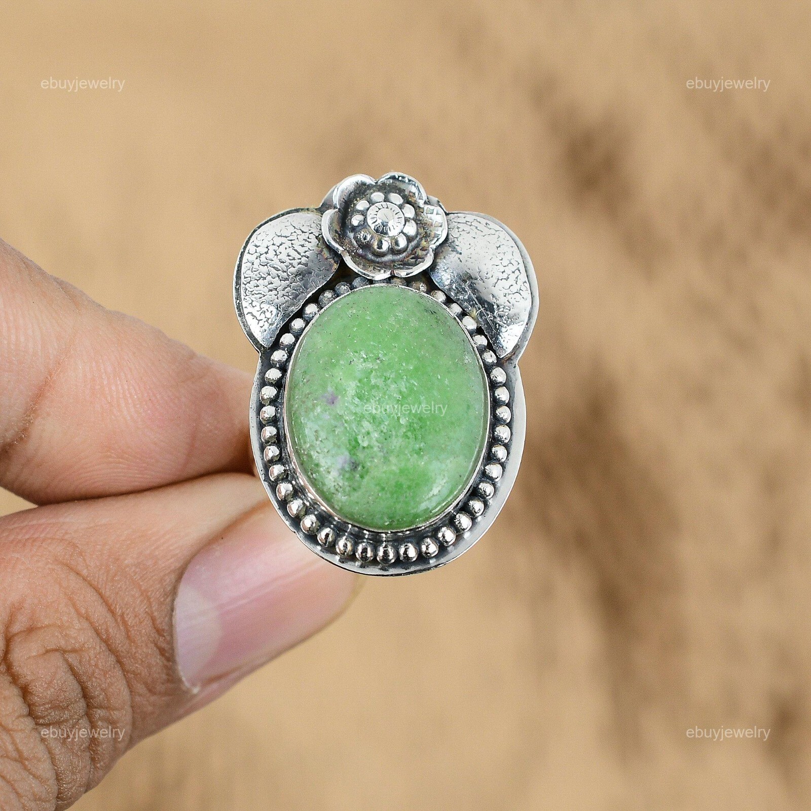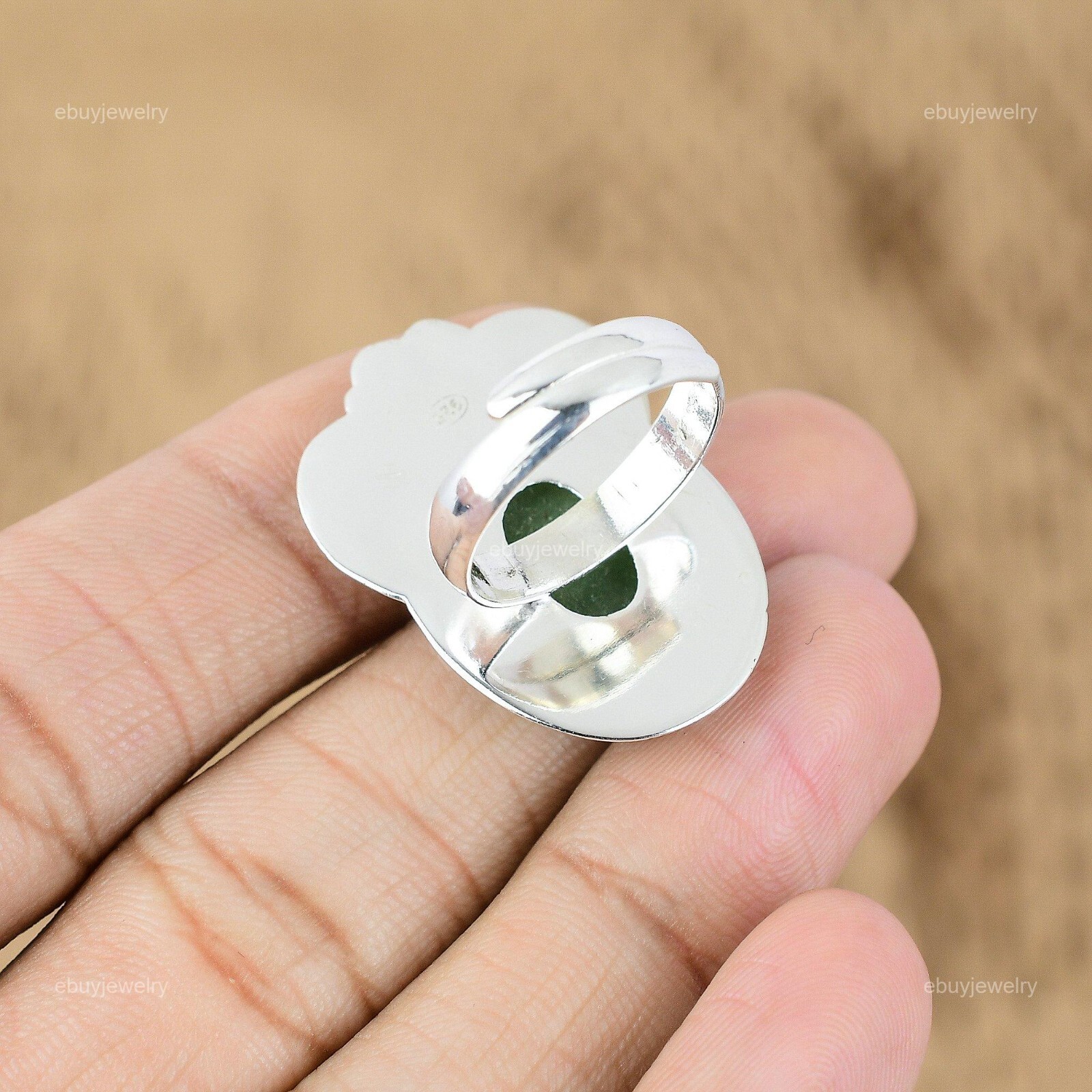 как выглядит Oval Green Aventurine Gemstone 925 Sterling Silver Trendy Flower Ring Jewelry фото