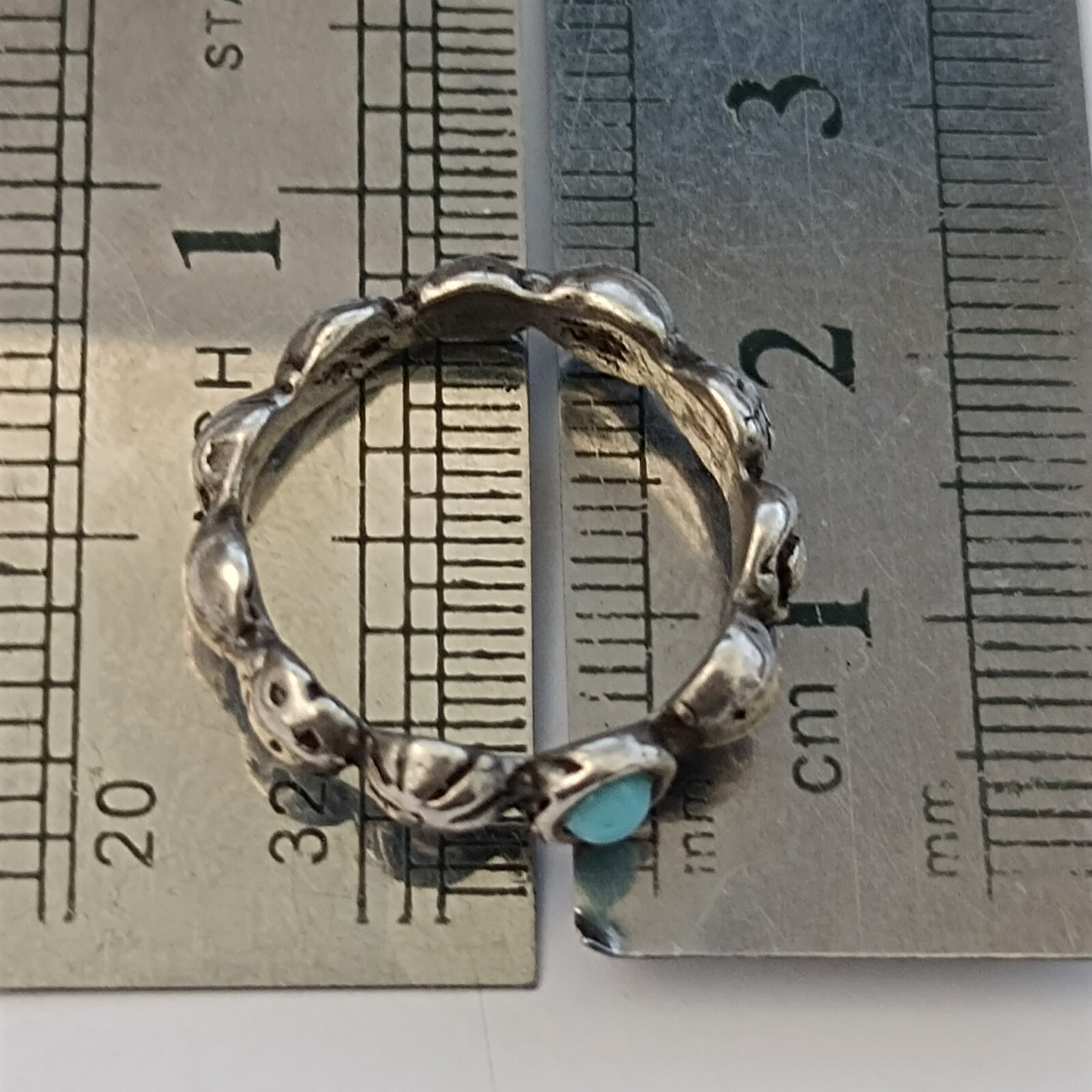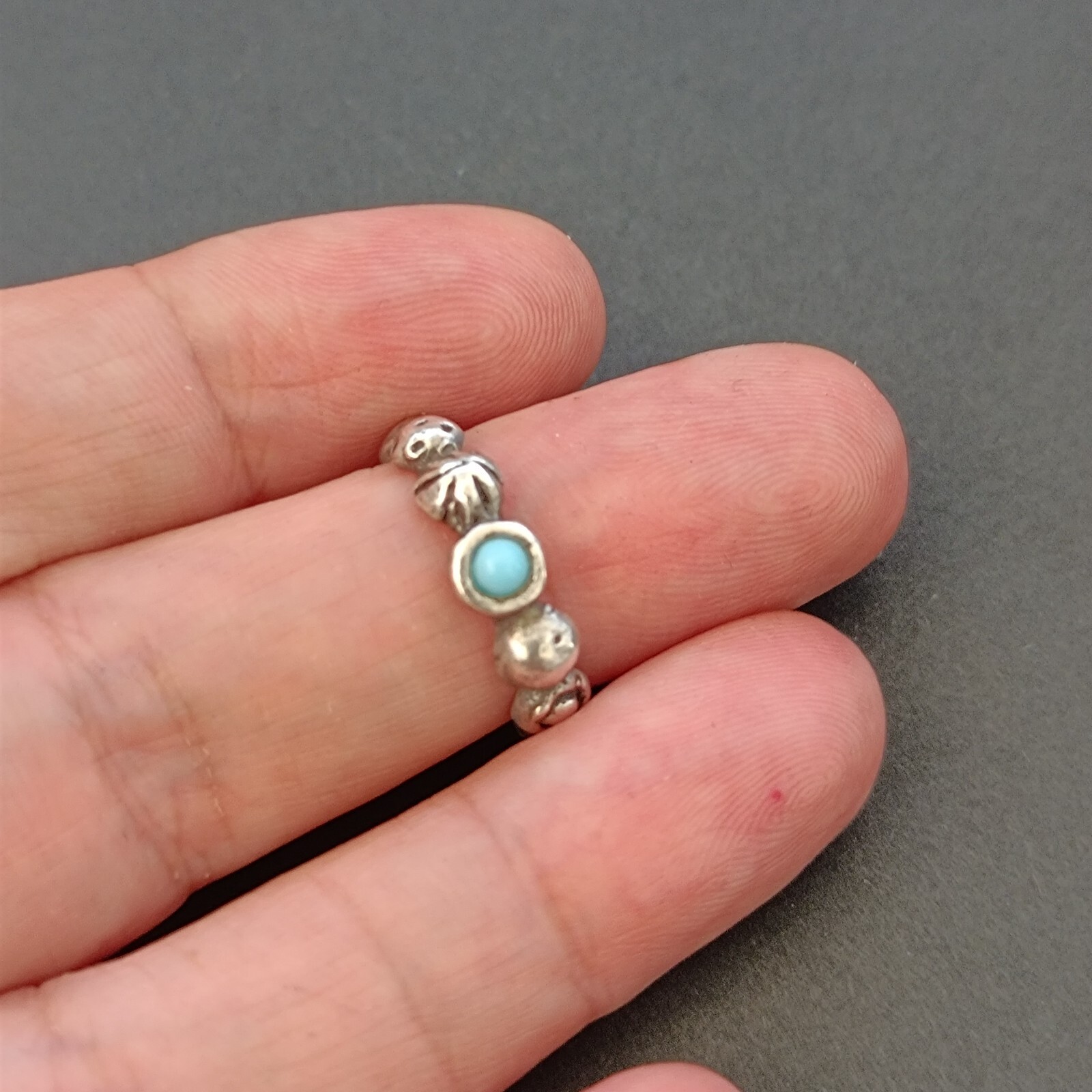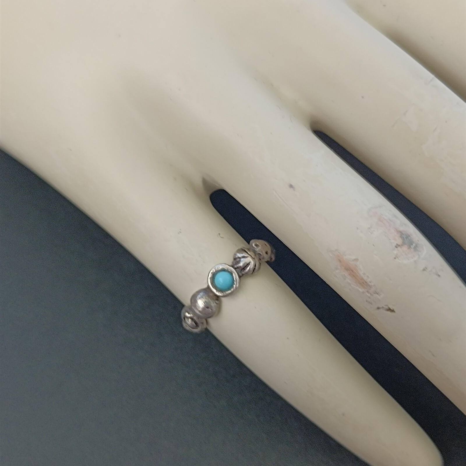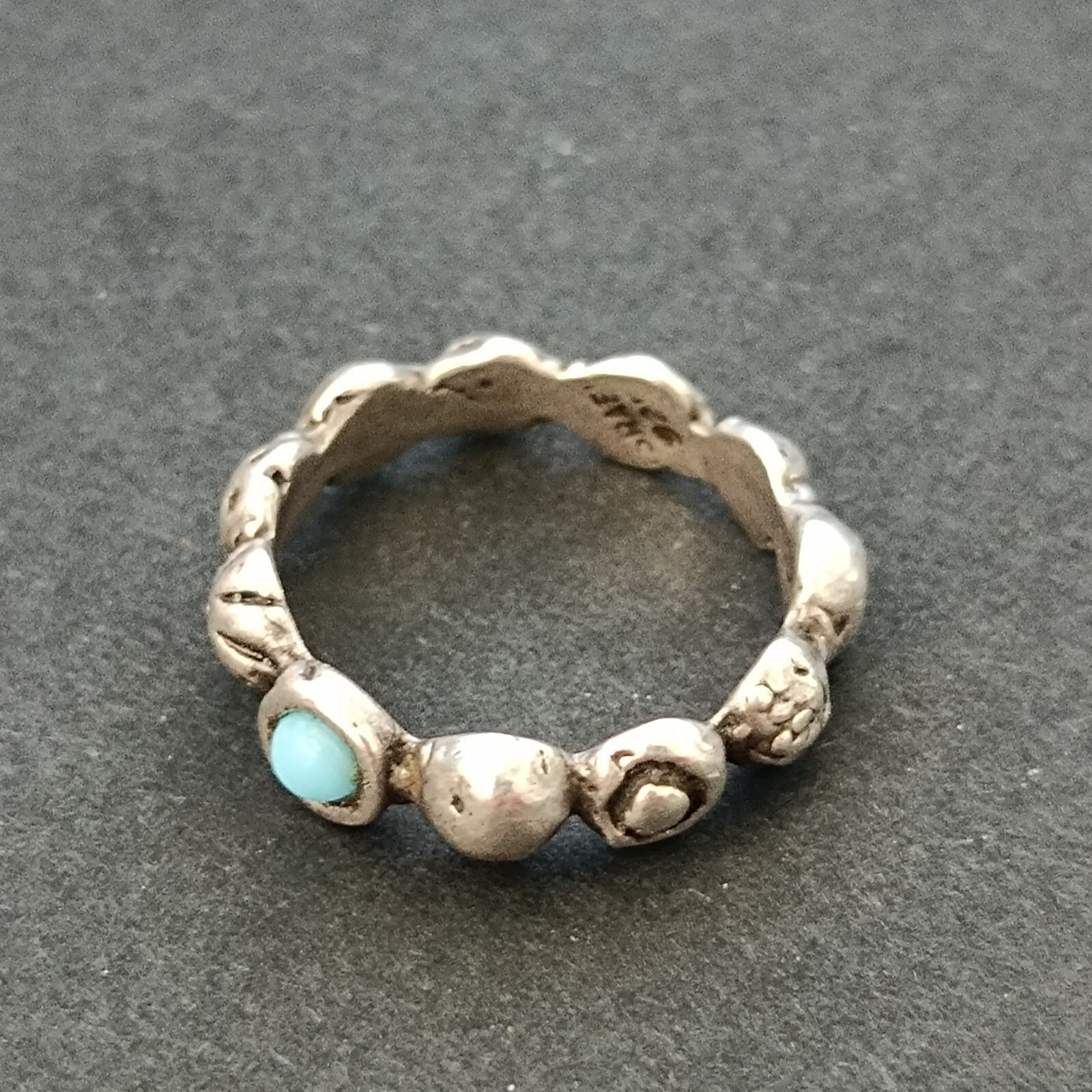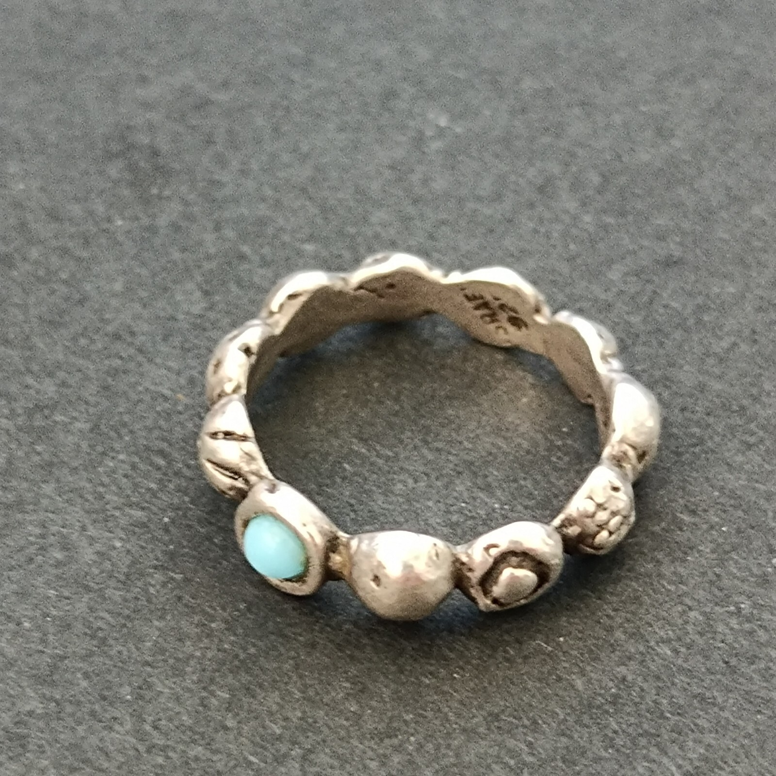 Vintage Silver Ring 5.25 Modernist Artisan Turquoise Israel Organic Style Boho