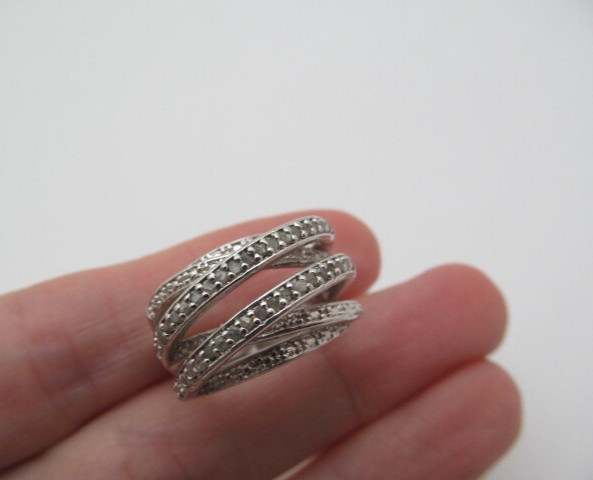 как выглядит 925 Sterling Silver Diamond Multi Layer Loop Raised Bands Band Ring Size 7.25 фото