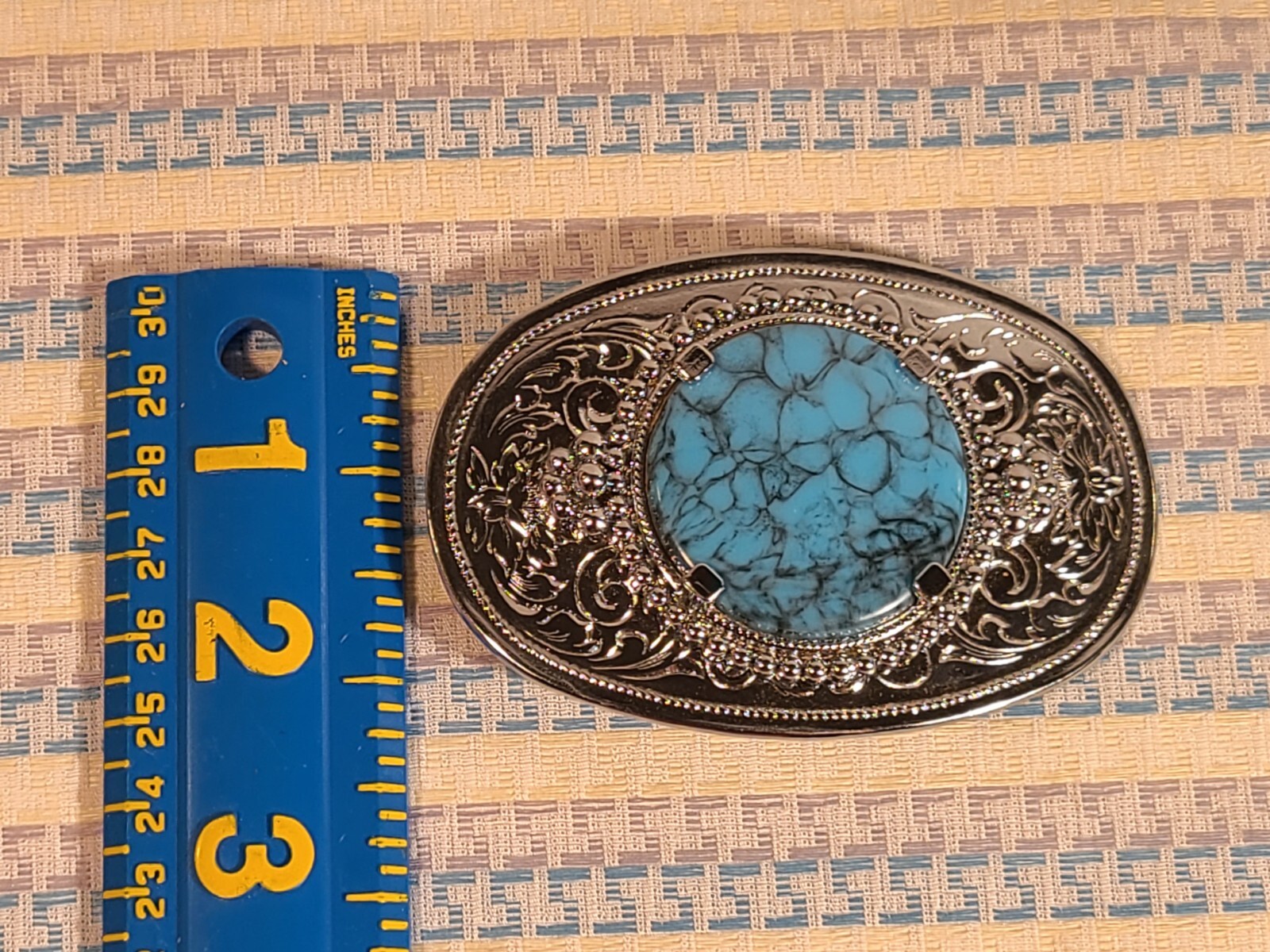 как выглядит Vintage Belt Buckle Faux Turquoise Silver Tone Southwest Boho Style фото
