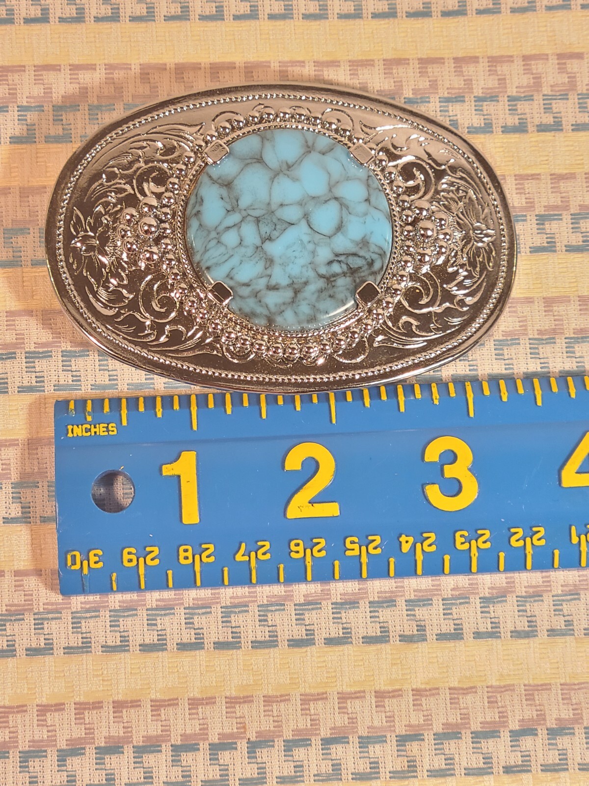 Vintage Belt Buckle Faux Turquoise Silver Tone Southwest Boho Style