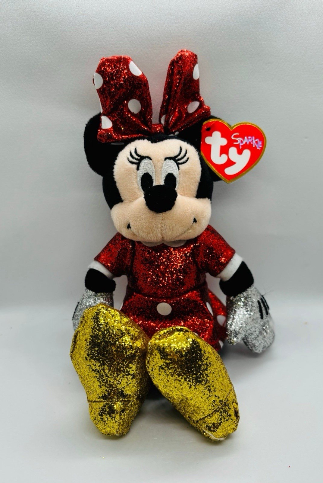 Beanie Babies x Disney Mickey Minnie Mouse Red Sparkle 8 Plush Set NWT