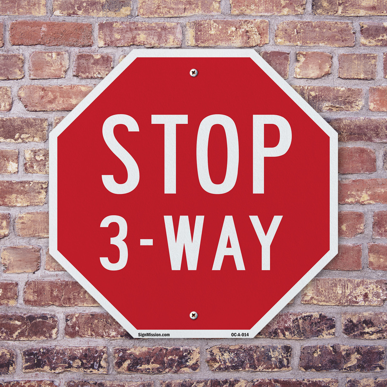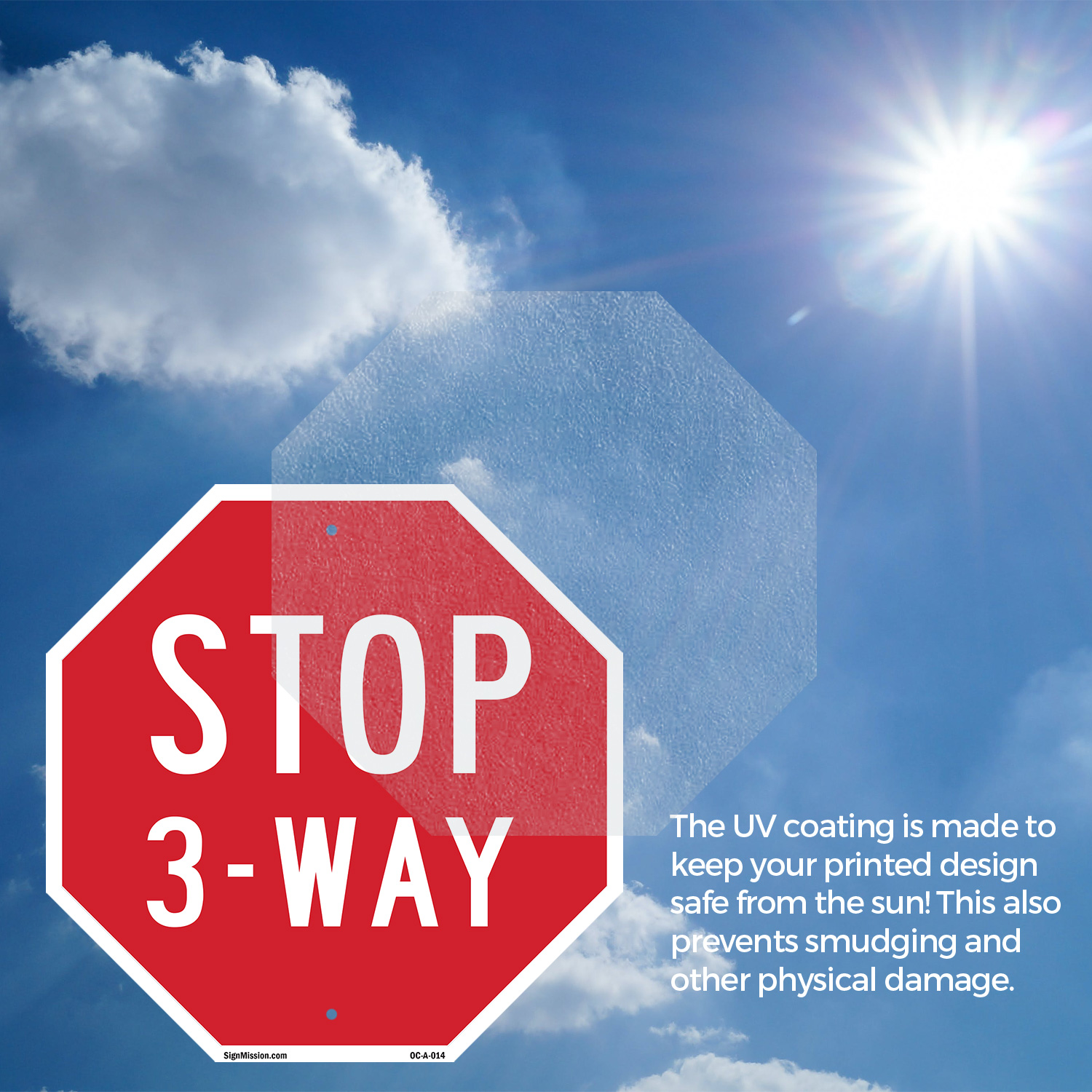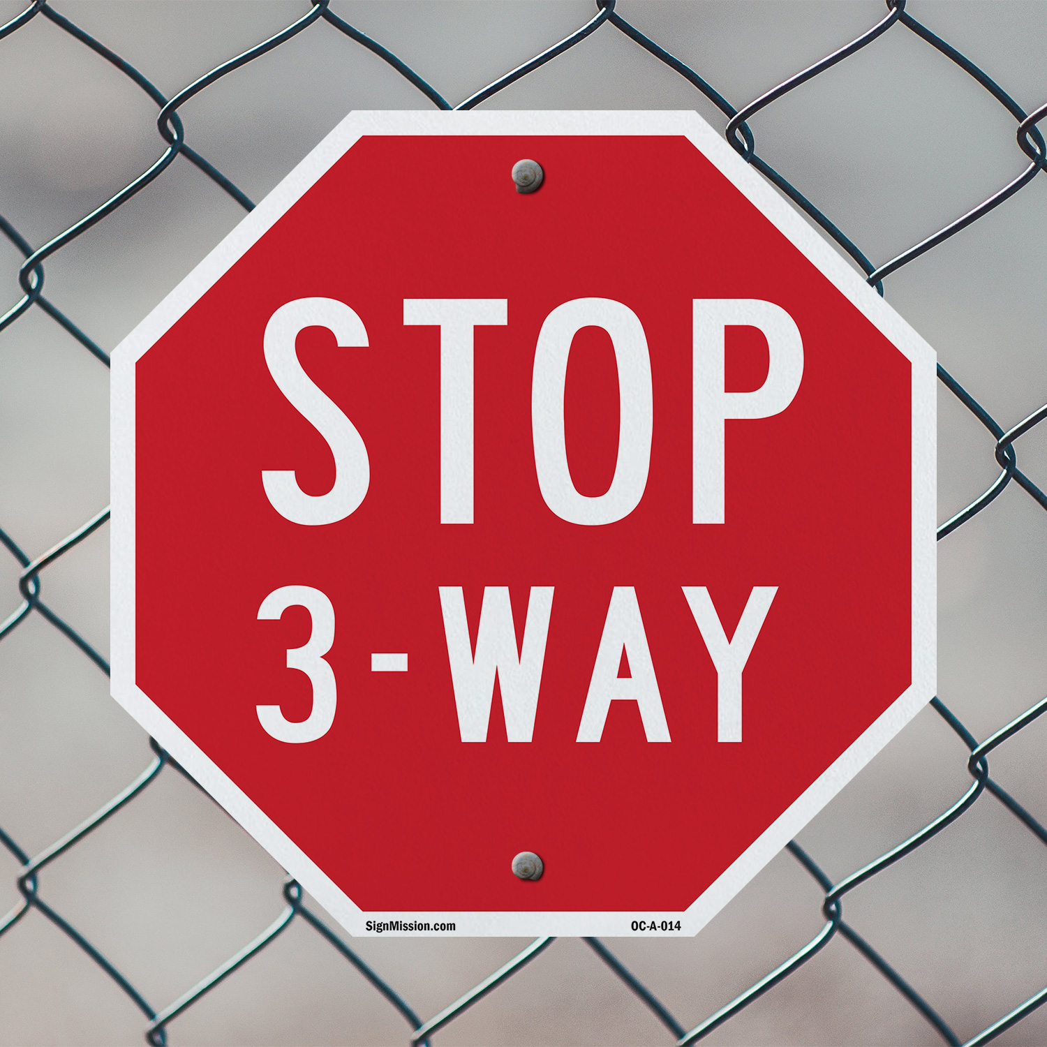 Stop 3-way Octagon Sign Weather Resistant UV Protected Made in the USA
