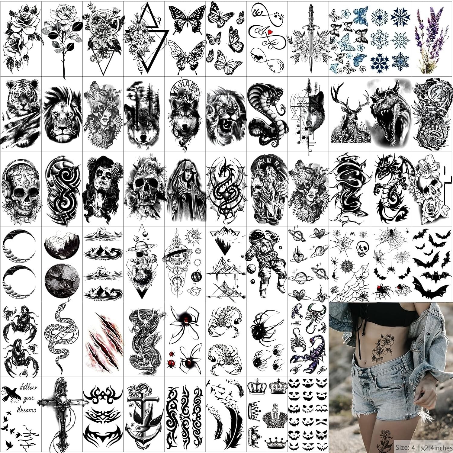 72 hojas de tatuajes temporales media manga en 3D para hombres mujeres y adultos