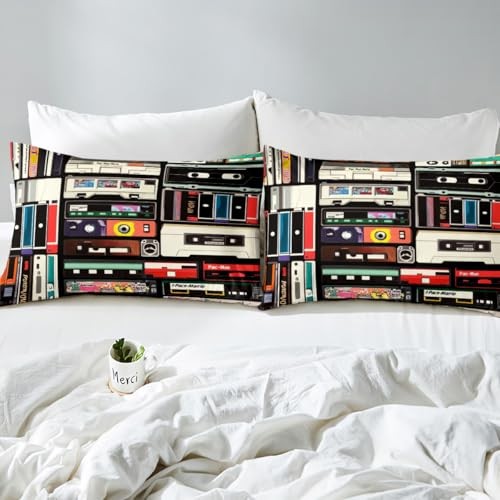 Vintage Cassette Bedding Set Queen Size, Music Queen No Comforter Multi 14