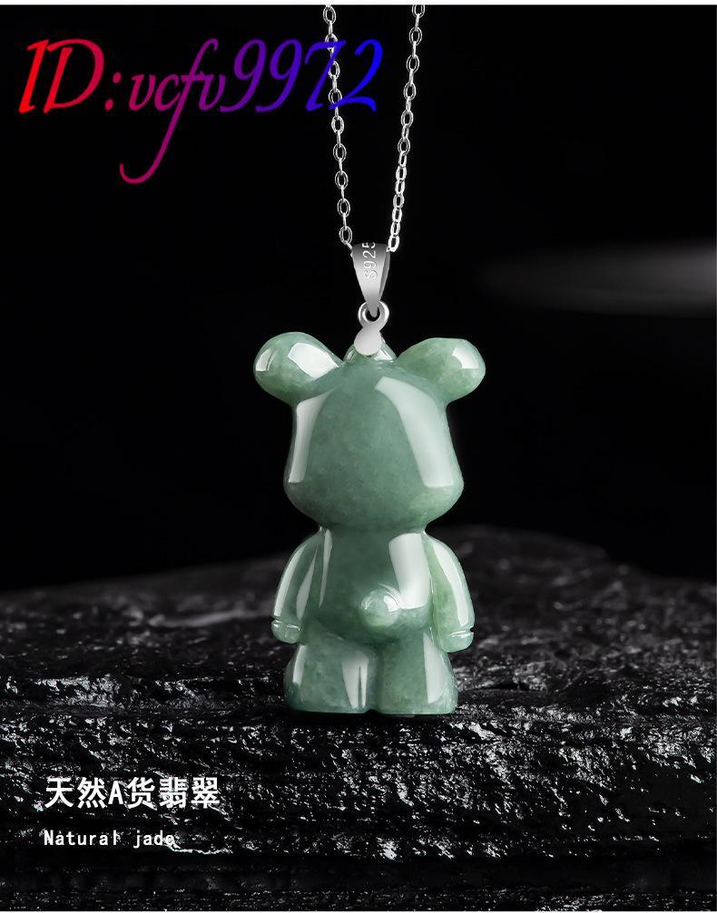как выглядит Green Myanmar Jadeite Bear Pendant Necklace 925 Silver Burmese Jade фото