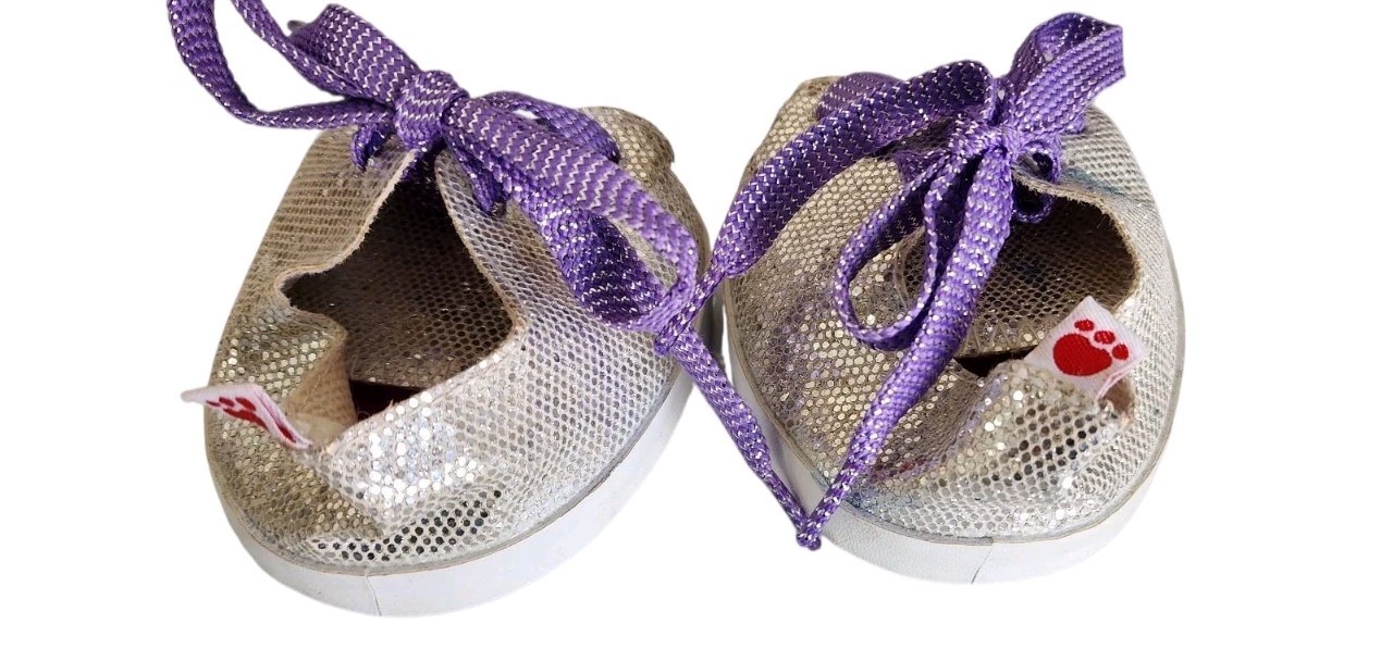 BABY Build-A-Bear Glitter Shoes Silver Pink Purple Shoelaces Sneaker