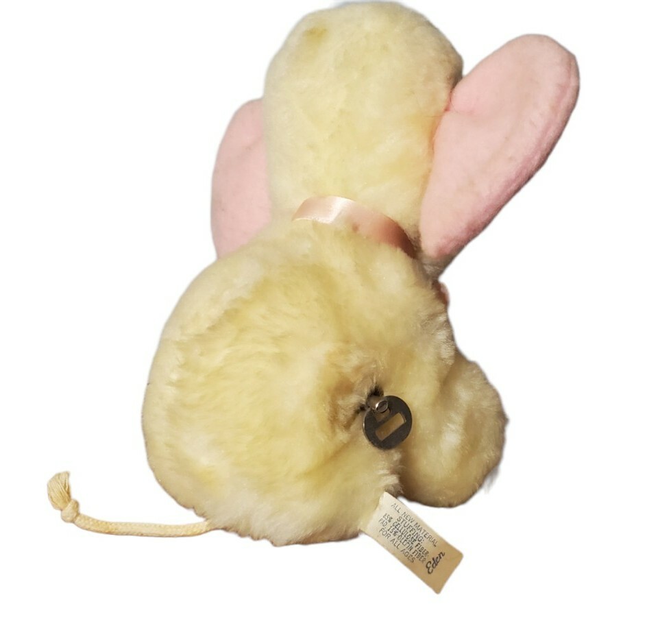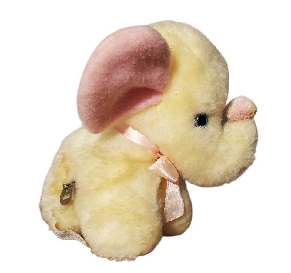 как выглядит Vtg Eden Plush Elephant Yellow Pink Ears Doesnt Wind-Up Key Is Stuck фото