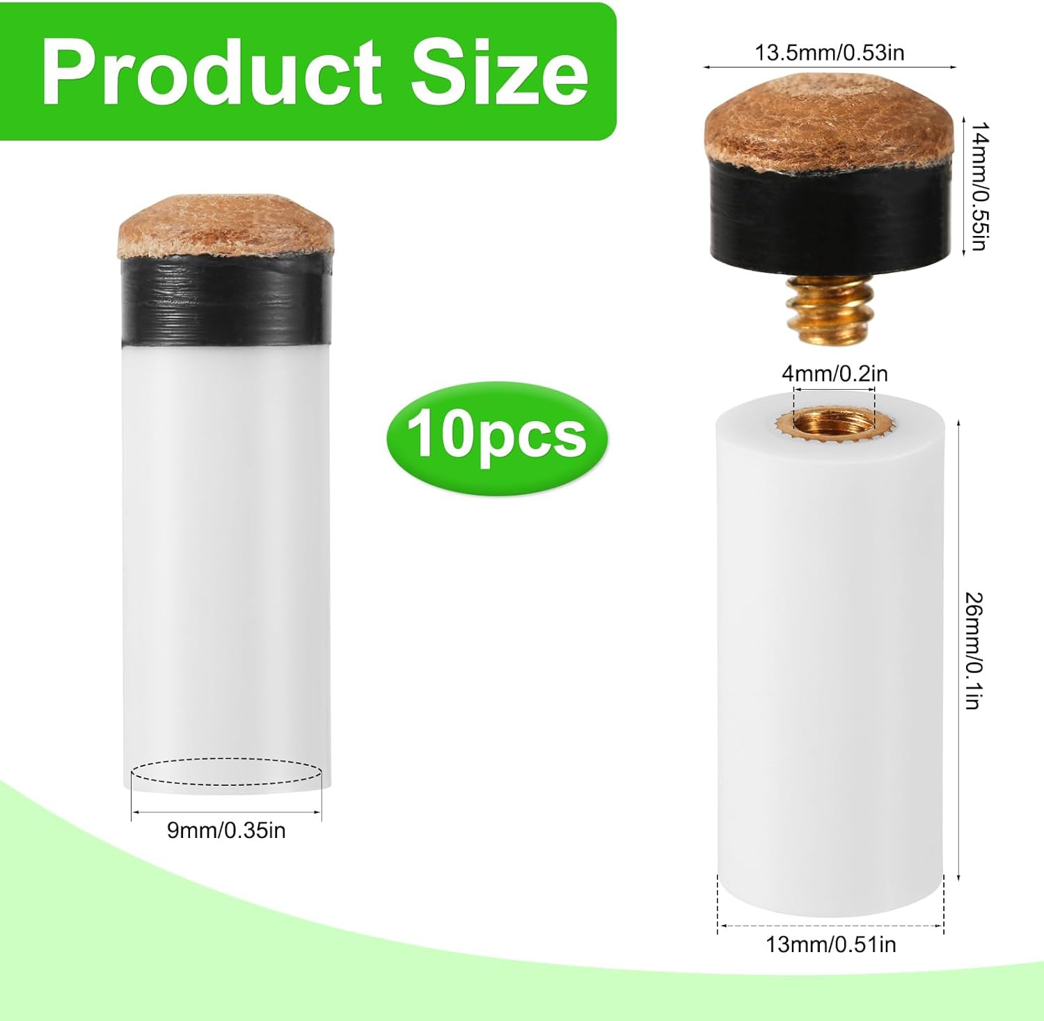10Pcs Pool Stick Tips, 0.51In Billiard Cues Tips Replacement with White Pool Cue