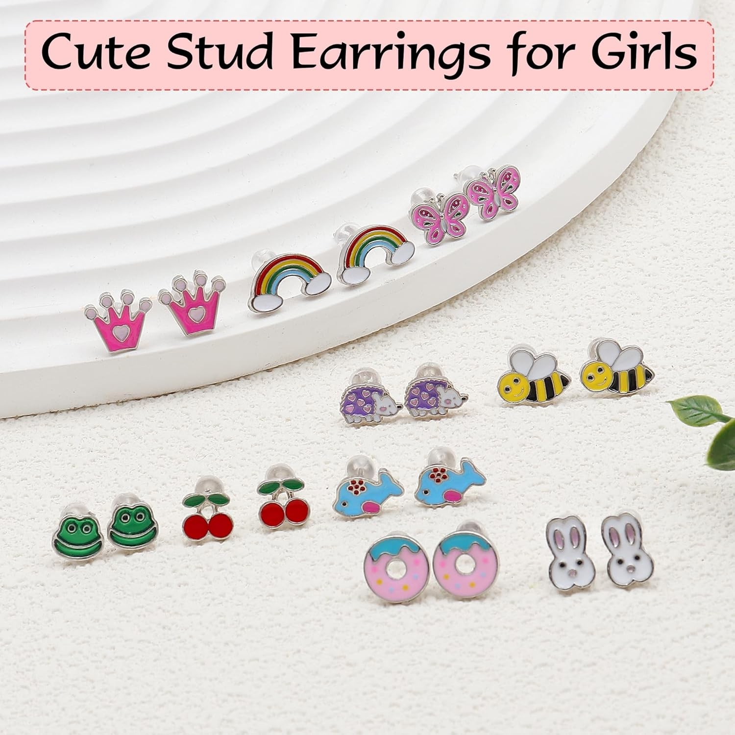 24 Pairs Hypoallergenic Stud Earrings for Girls Kids Cute Stainless Steel...