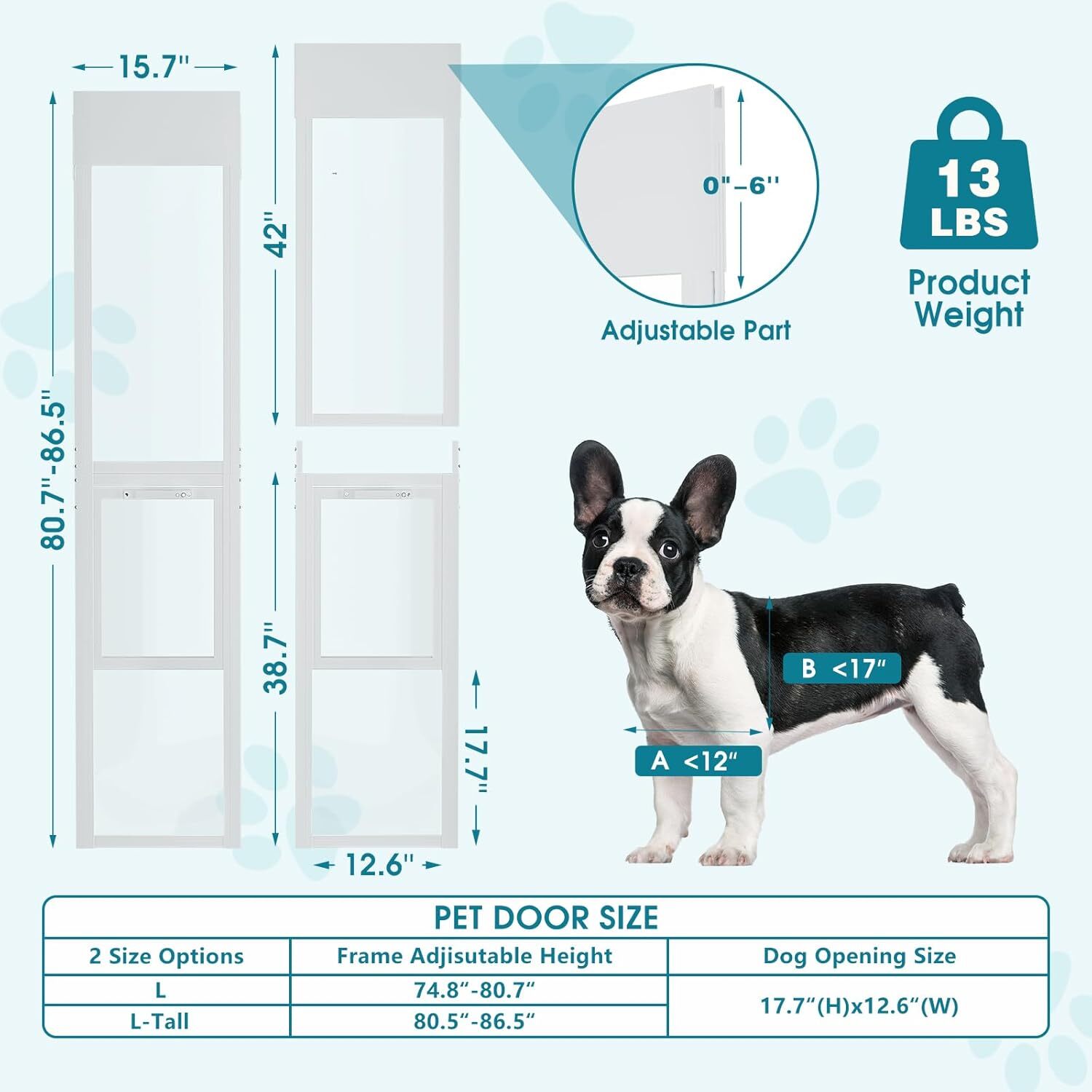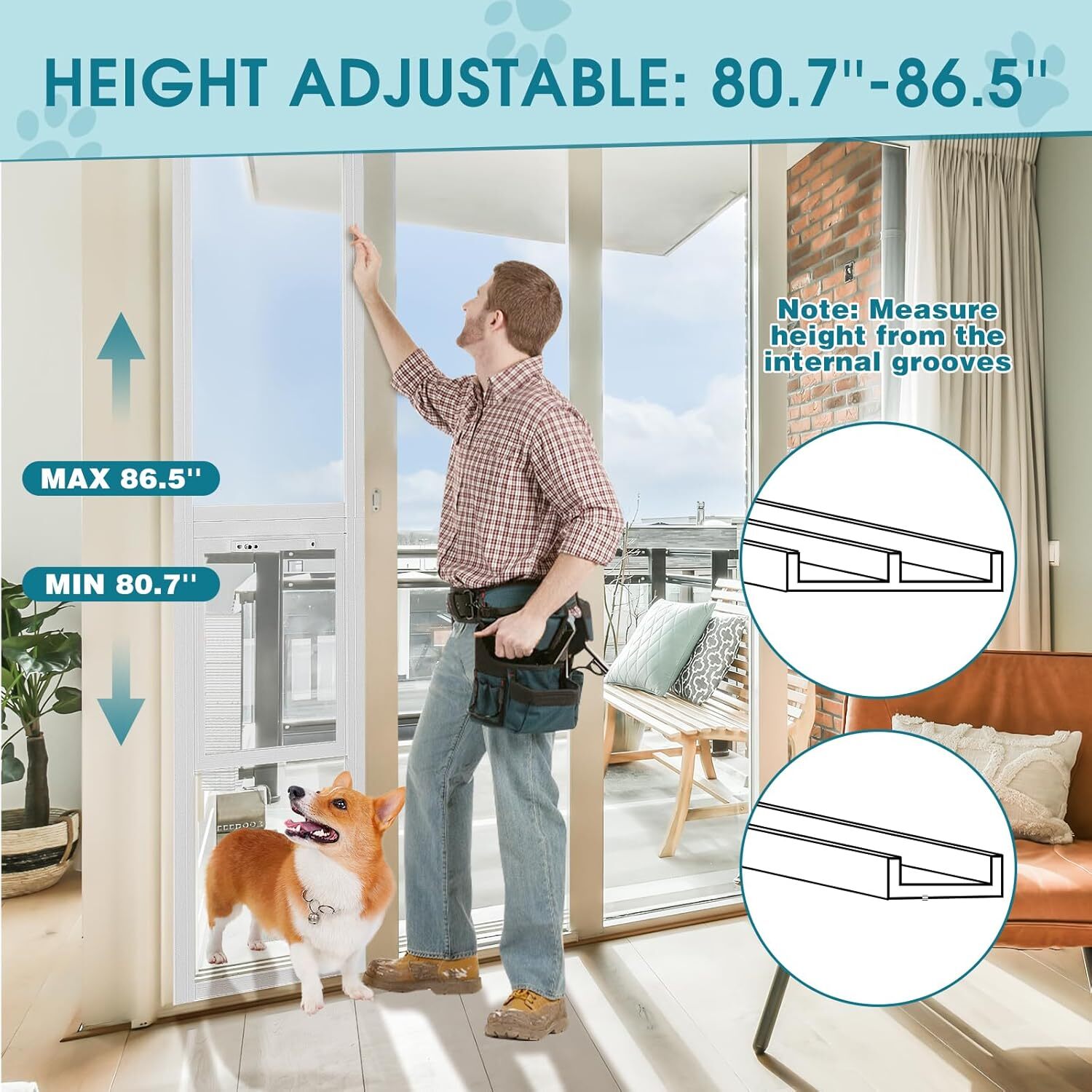 ABORON Dog Door For Sliding Glass Door 80.71 to 86.61 Adjustable Height Insert