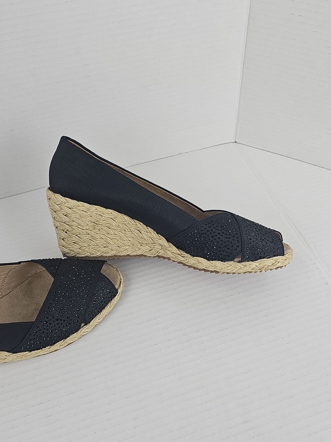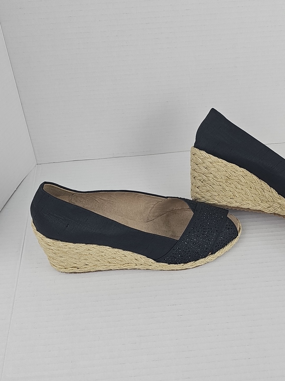 как выглядит Anne Klein Womens Sz. 8.5 Ezzie Wedge Slip On Wedge Sandals - Black фото