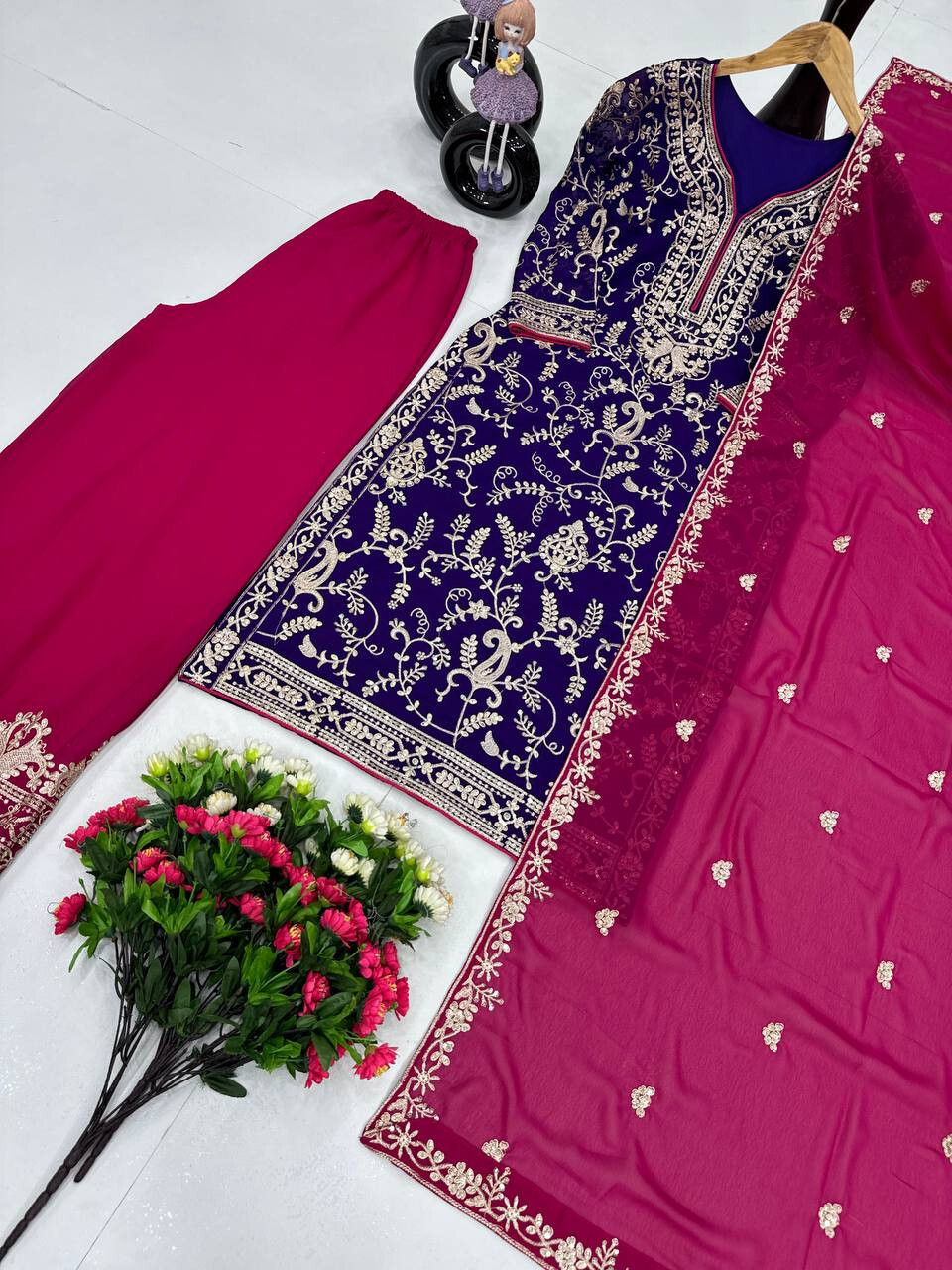 как выглядит New Latest Heavy Faux Georgette Purple Top And Palazzo With Dupatta For Function фото