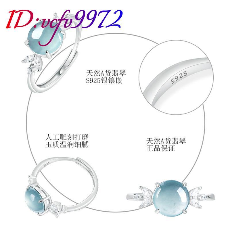 как выглядит Blue Myanmar Jadeite Rings Designer Luxury Natural Burmese Jade 925 Silver фото