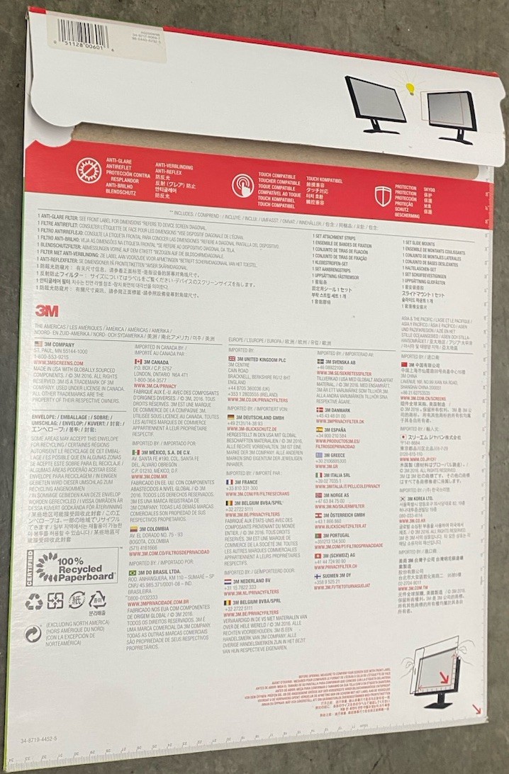 3M Anti-Glare Filter for 20 Widescreen Monitors Touch Compatible AG200W9B
