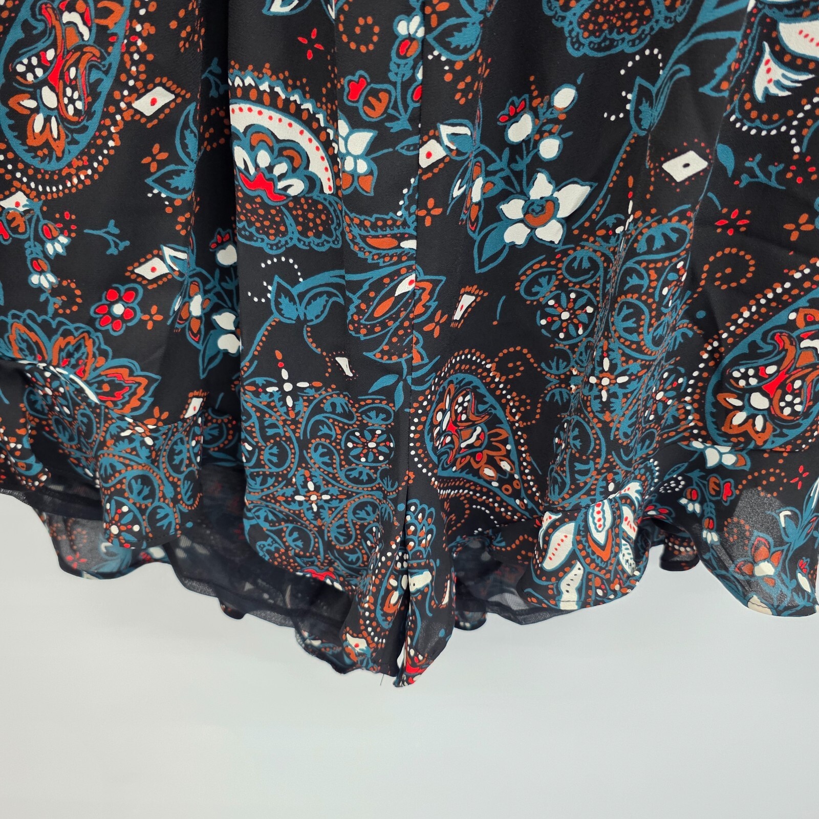 как выглядит Boho Floral Cold Shoulder Romper Womens M Paisley Ruffle Hem Summer Festival фото