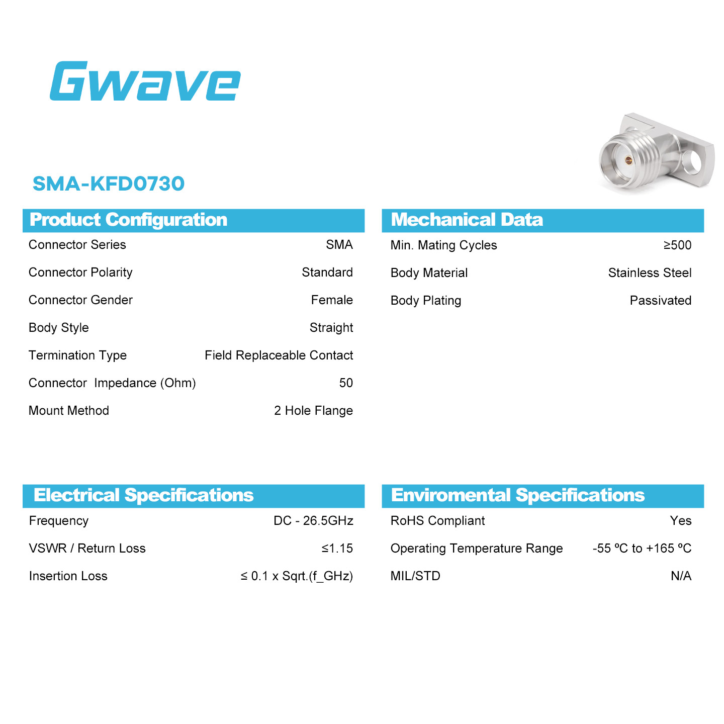 SMA Female Connector ,2 Hole Flange,Hole Spacing 8.6mm, Pin Diameter 0.3mm