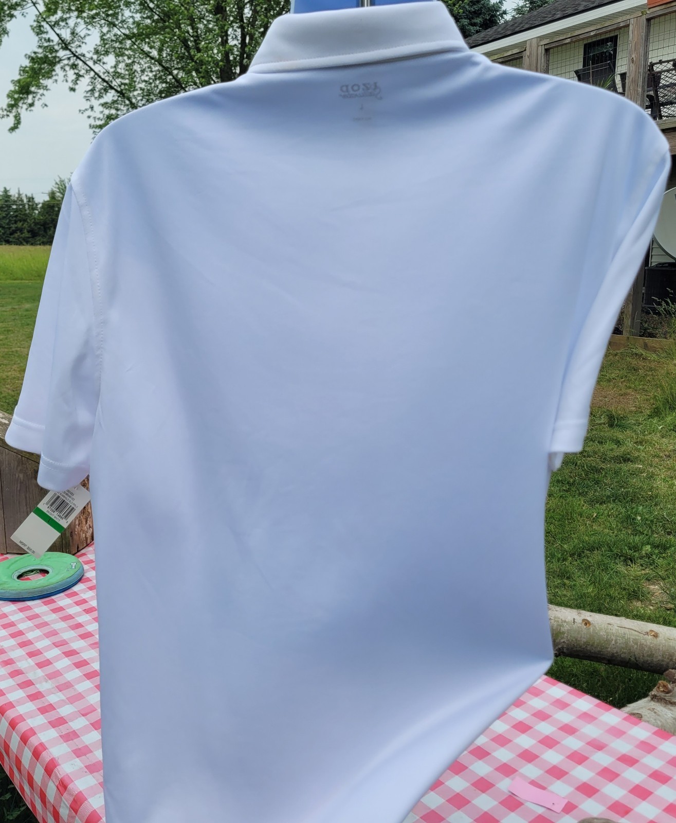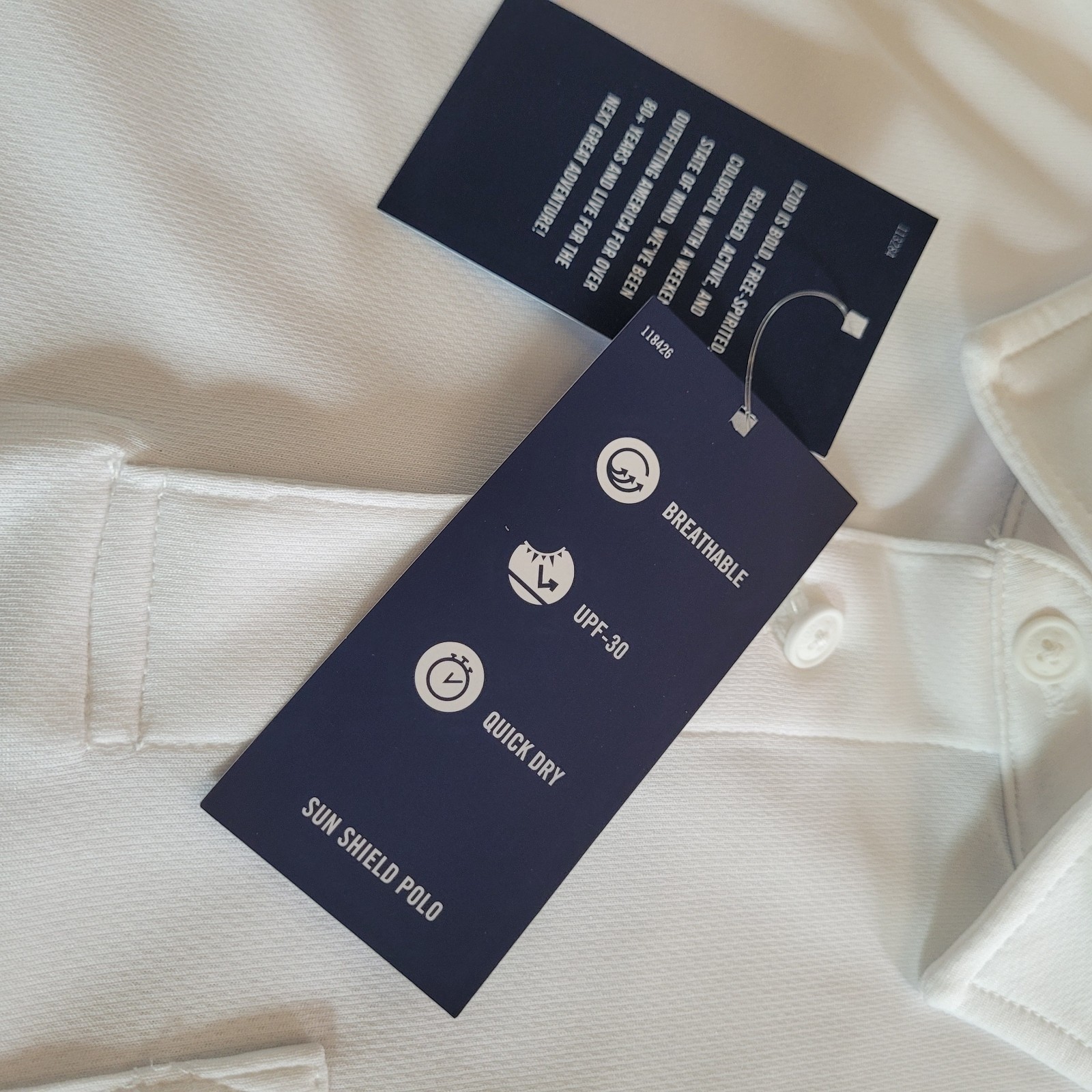 как выглядит Mens Large IZOD Saltwater Sun Shield Polo w/Blue Crest. Solid White. NWT фото