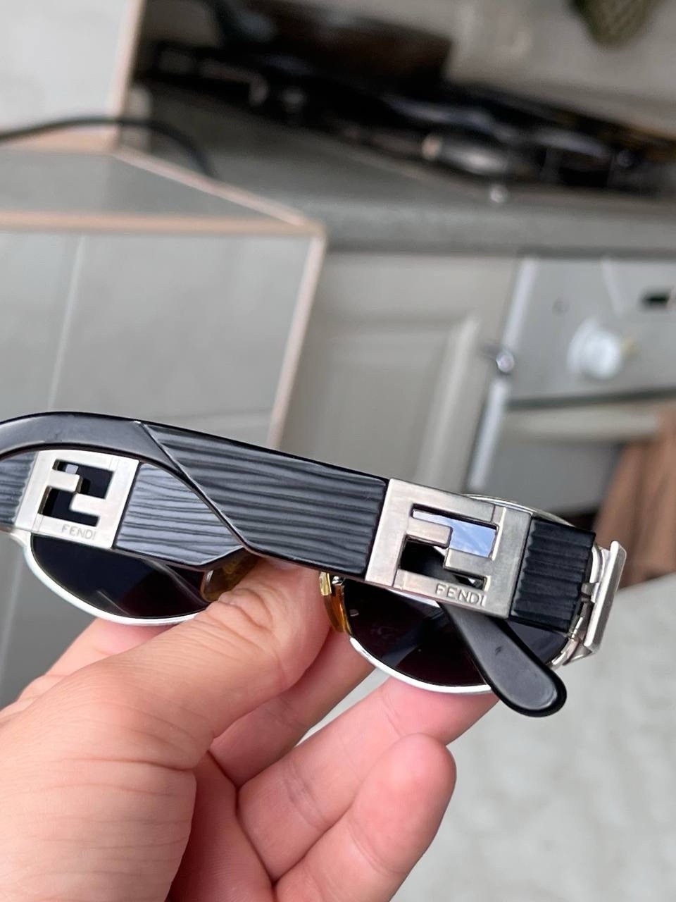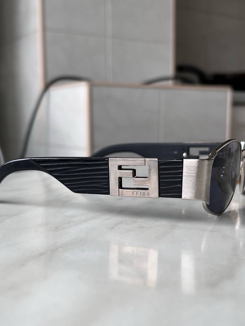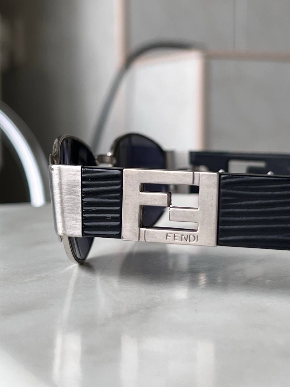 как выглядит FENDI Oval Silver Black Sunglasses Vintage 90s Double Logo FF condition Used фото
