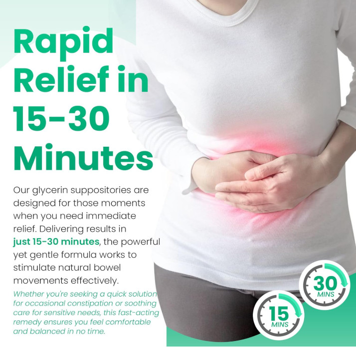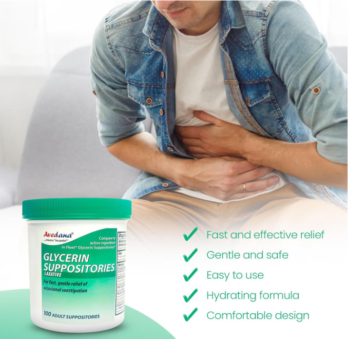 USP Glycerin Laxatives 100 Suppositories, Fast Gentle Constipation Relief