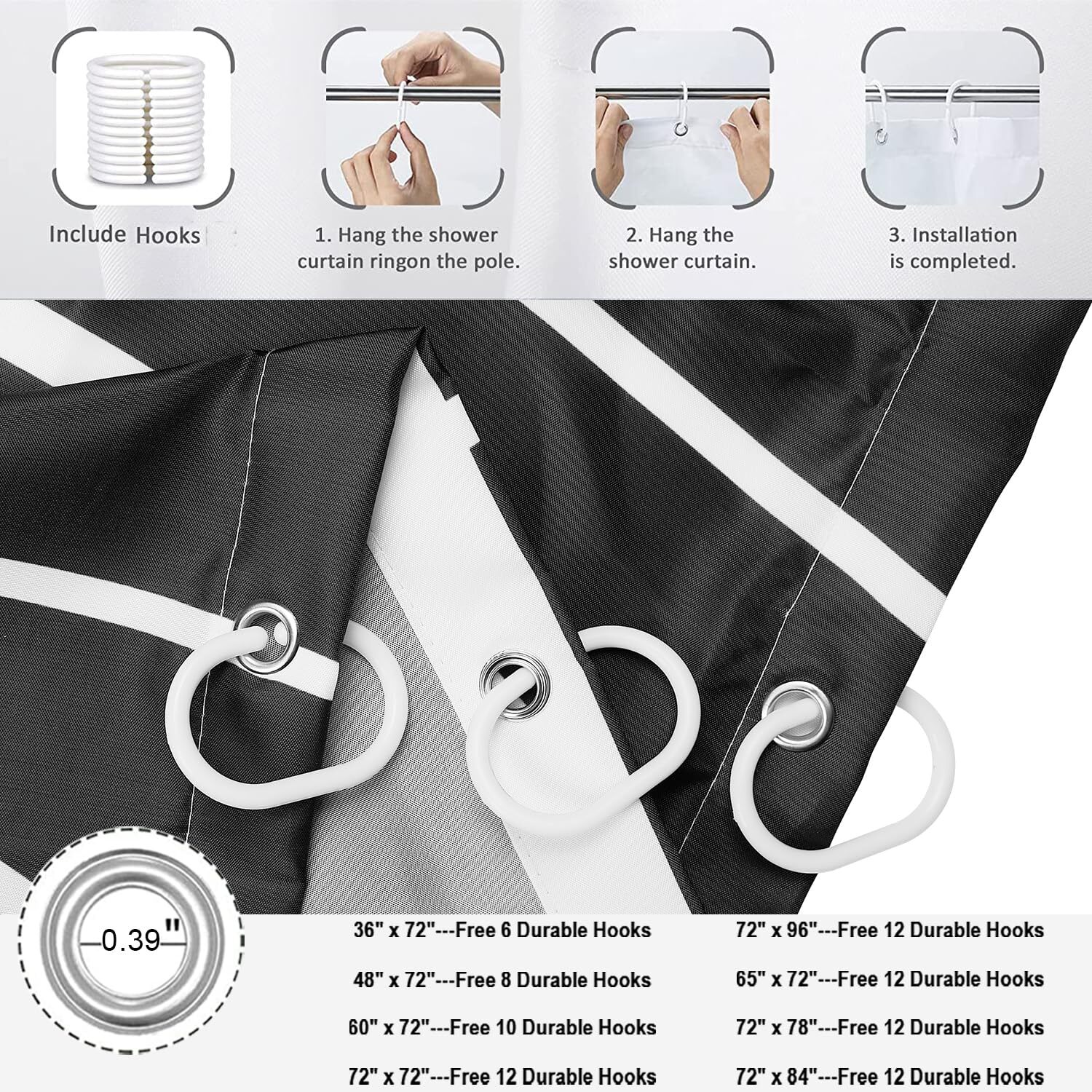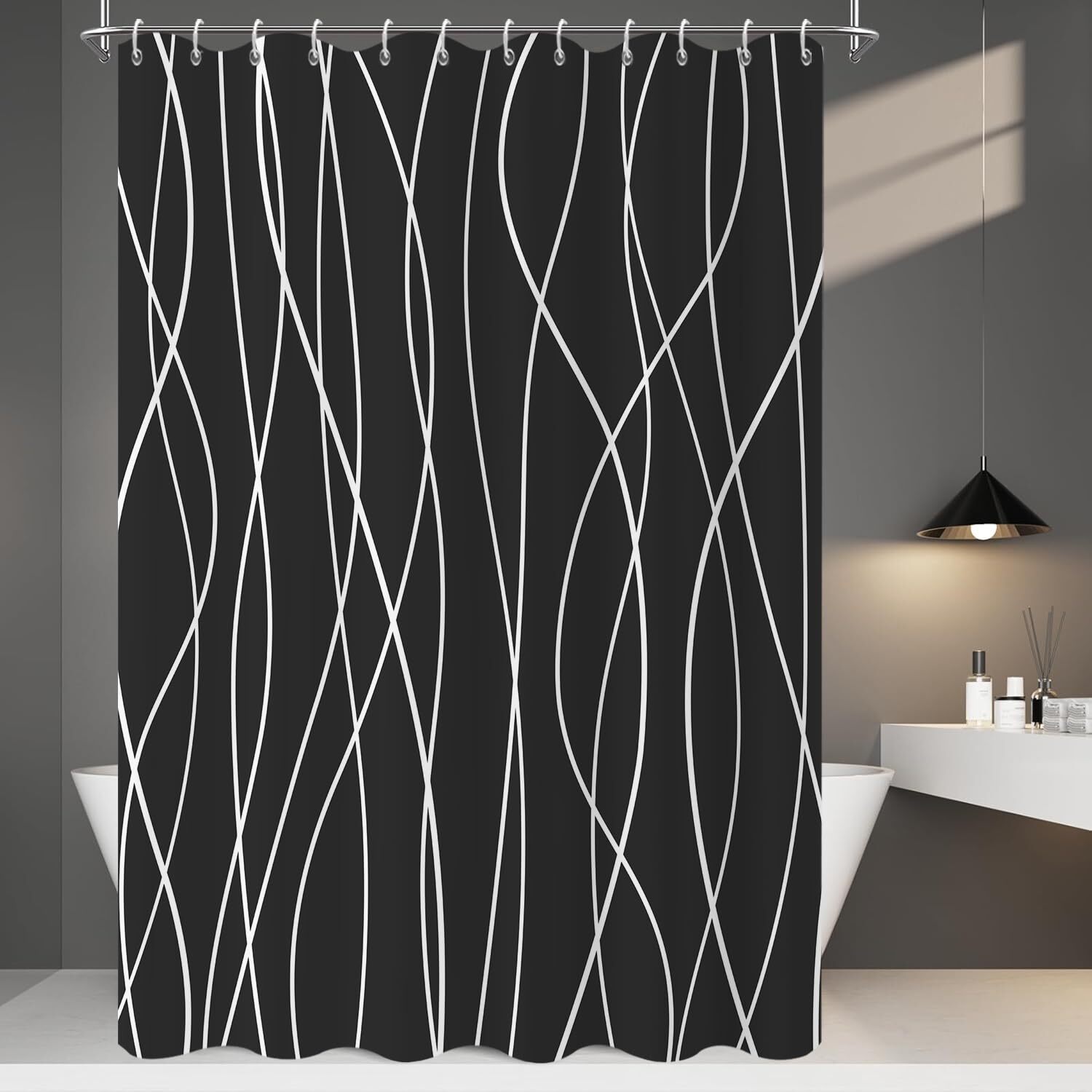 как выглядит Black Striped Shower Curtain Modern Abstract Geometric Black White Striped Si... фото