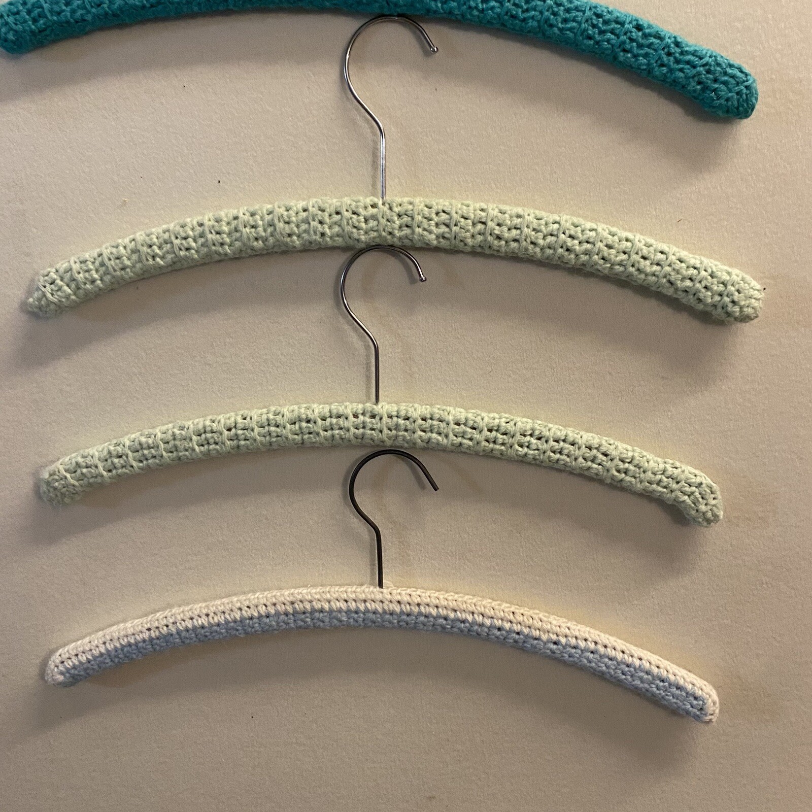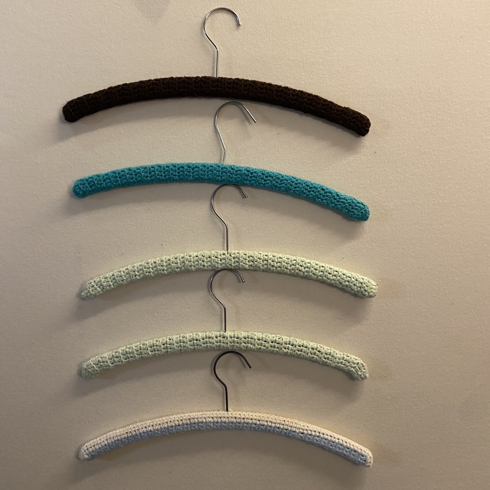 5 Vintage Retro Crochet Hangers Art Deco 1 Brown, 1 Teal, 2 Sage, 1 White/Blue