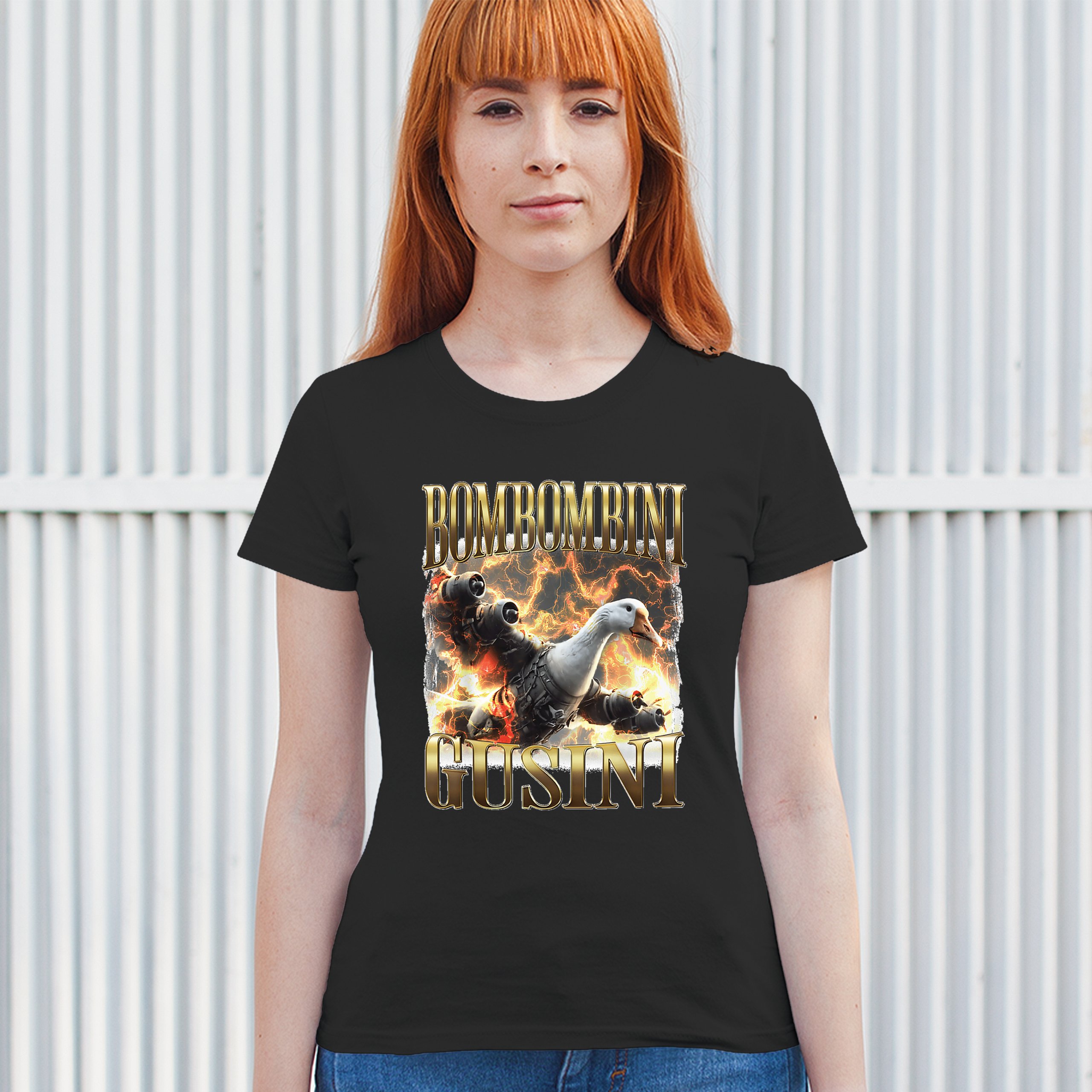 как выглядит Bombombini Gusini T-Shirt Fun Italian Brainrot Gen Z Alpha Meme Women