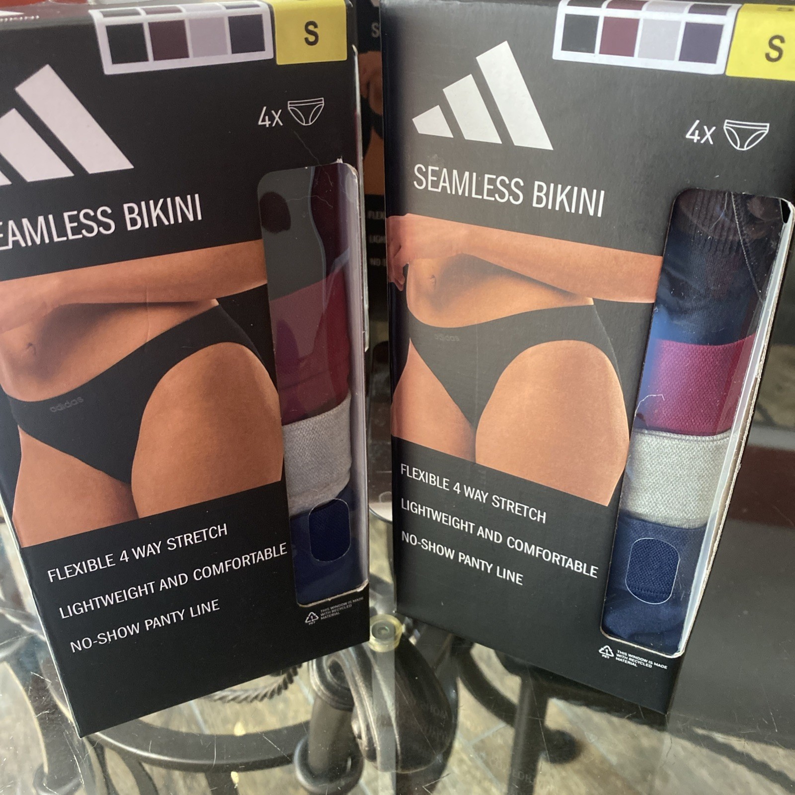 Adidas Woman's 4 pack 2 boxes seamless Bikini Flexible 4 Way Stretch - SMALL
