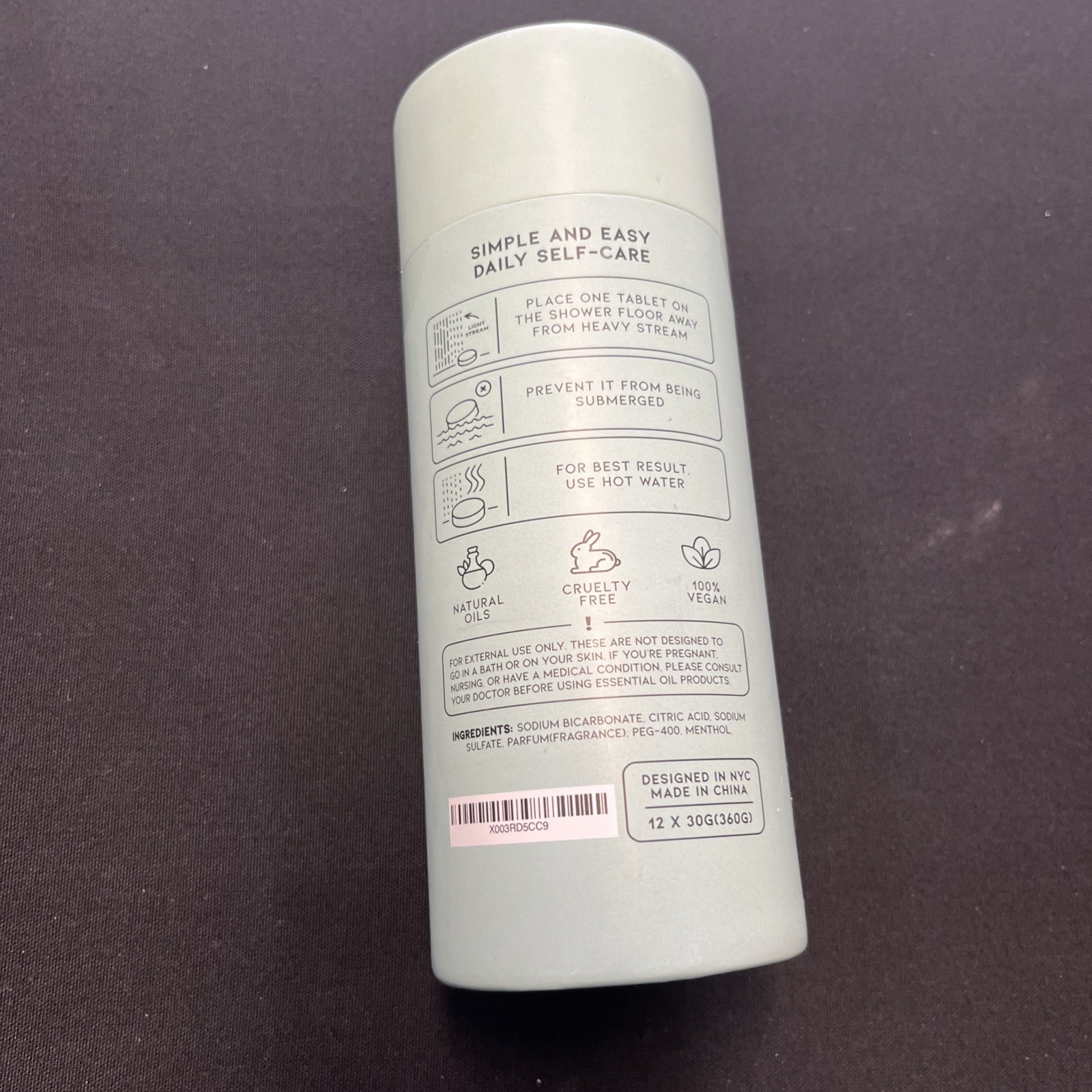 Ingredients: Sodium Bicarbonate, Citric Acid, sodium sulfate, menthol