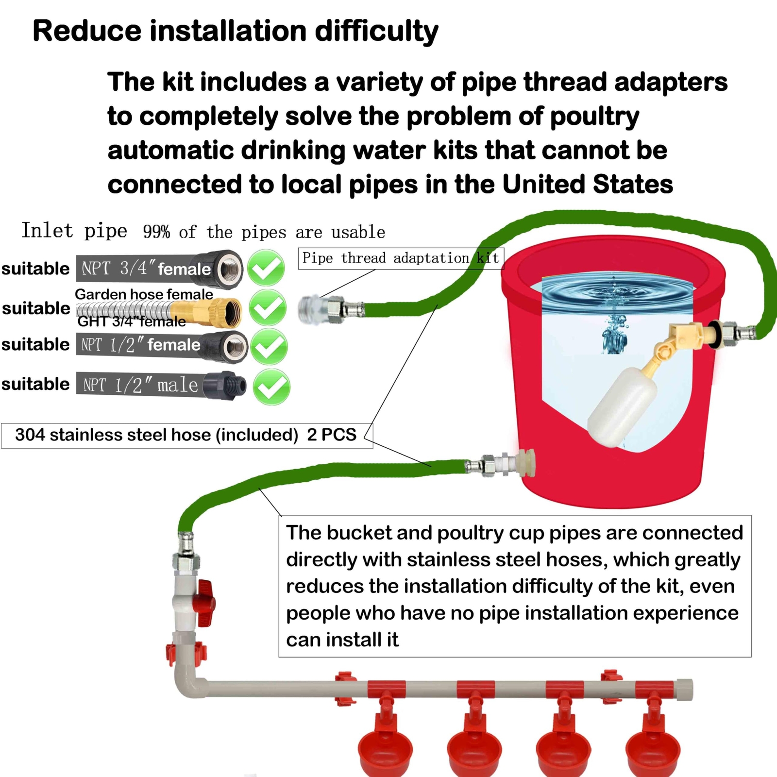 как выглядит Complete Set Pipeline Automatic Poultry Waterer System 1/2" PVC Pipe Accessor... фото