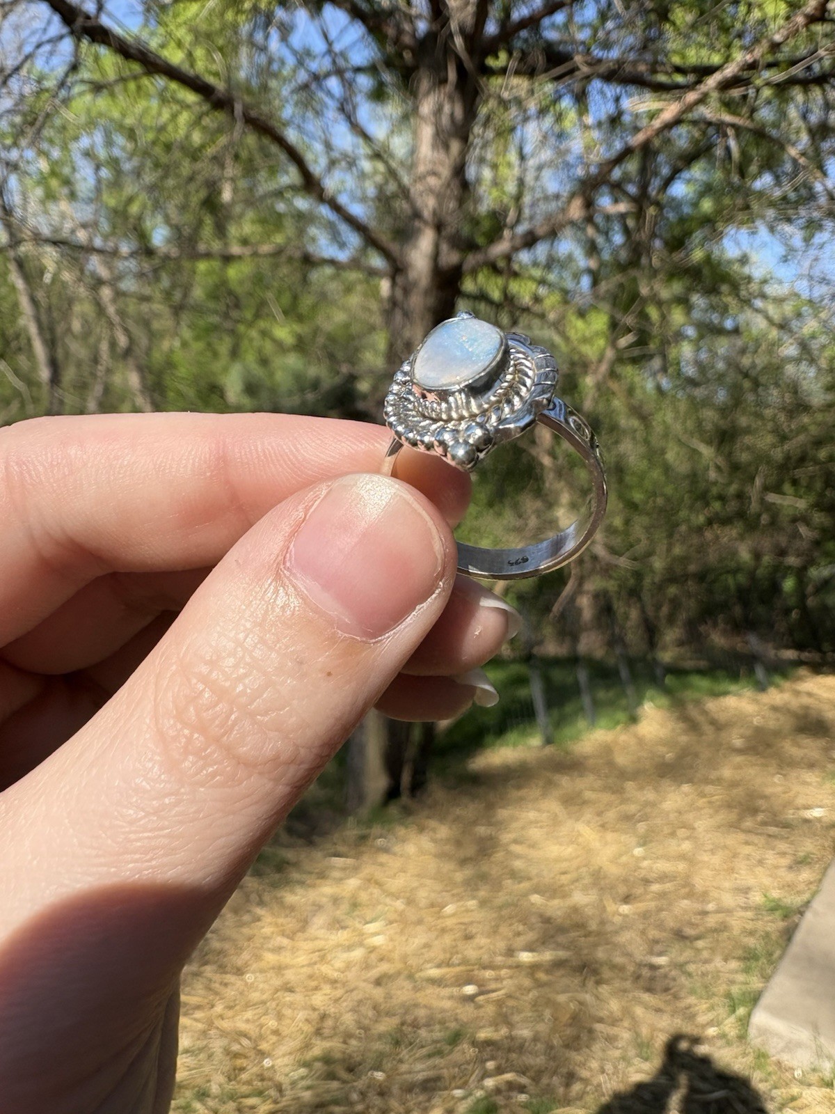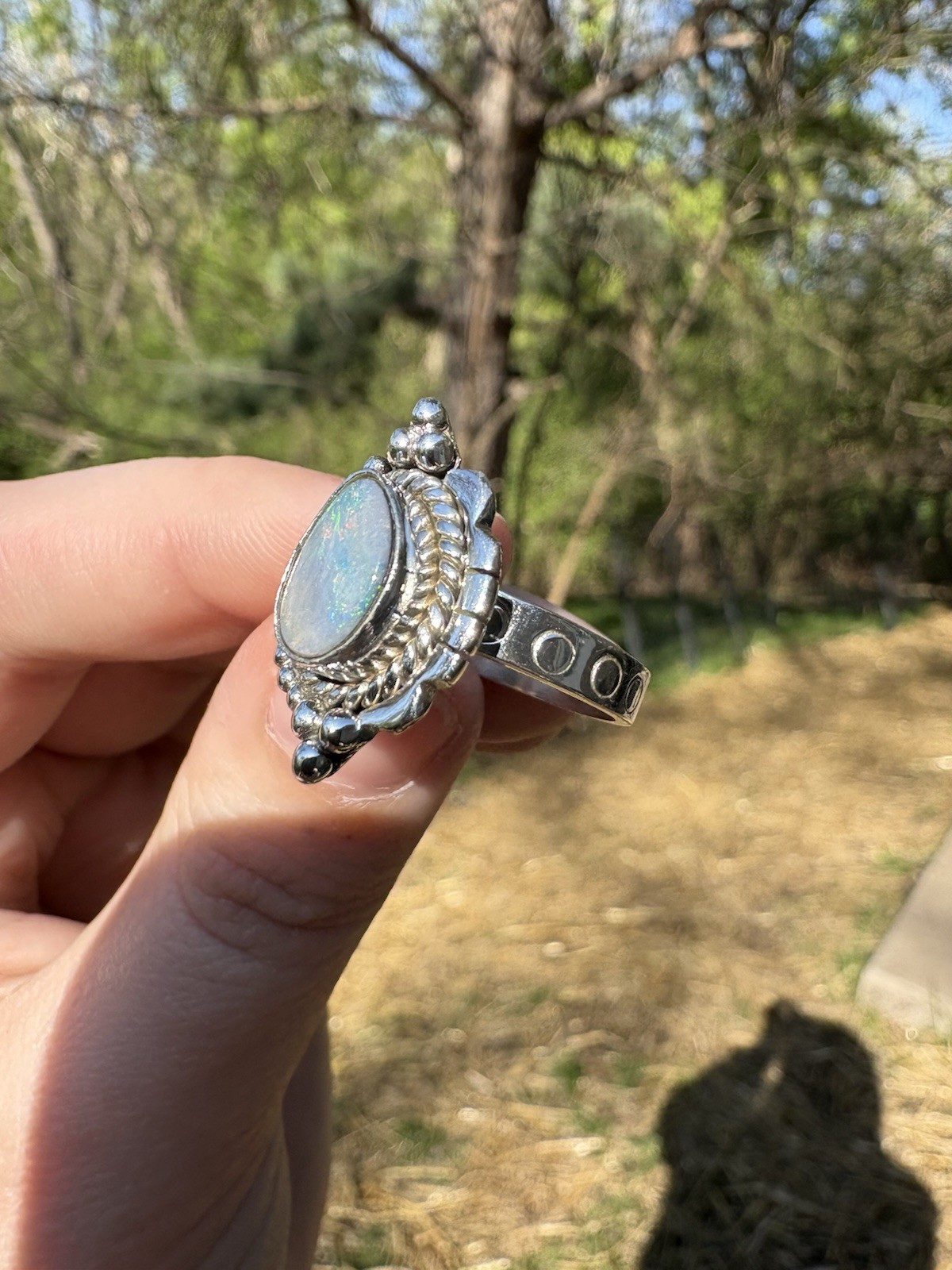Solid Sterling Australian Opal Ring Sz 7