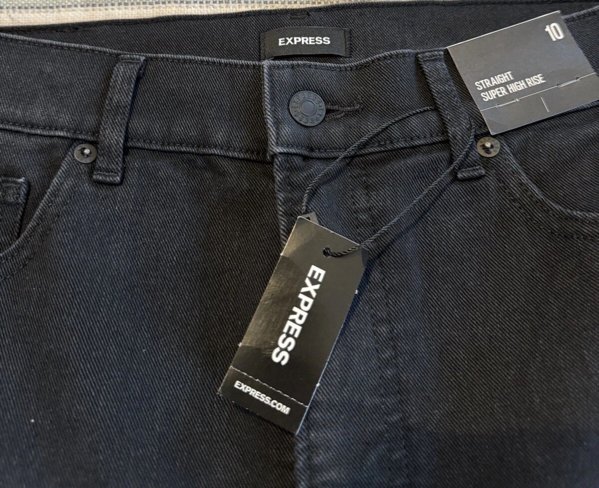NWT 80 Express Jeans Women s 10 Straight Super High Rise Stretch Black Denim