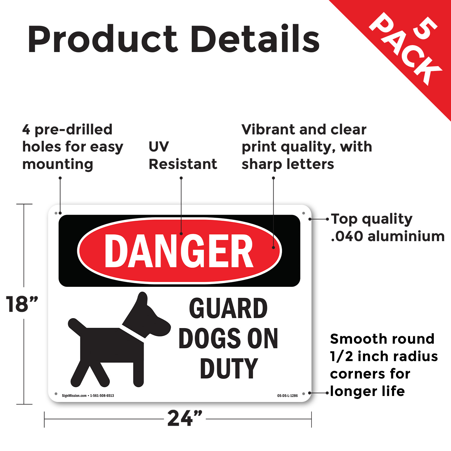 как выглядит Guard Dogs On Duty OSHA Danger Sign Metal, Plastic, Or Decal - 5 or 10 Pack фото