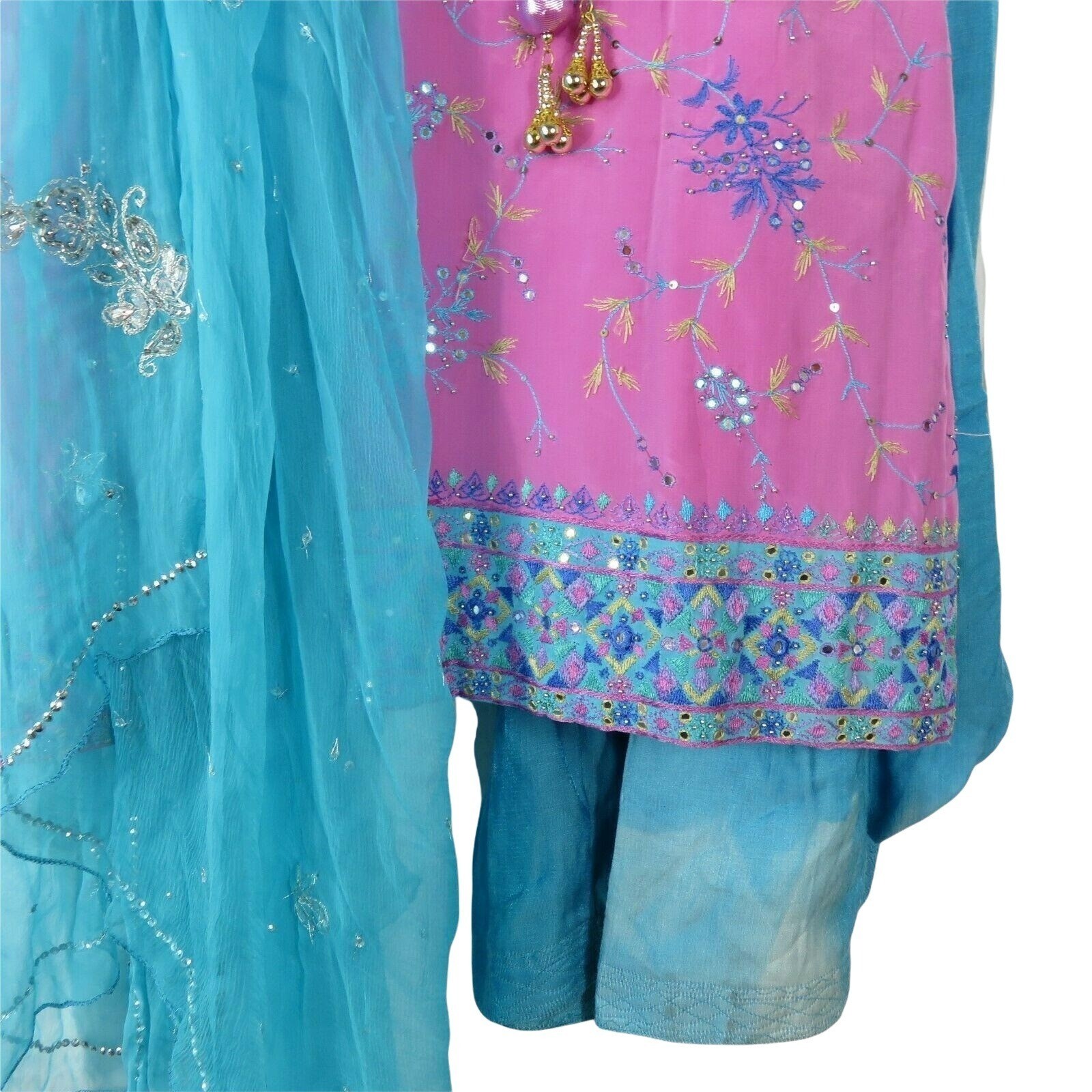 Pink Blue Embroidered Salwar Kameez Set with Dupatta Womens Medium Lightweight