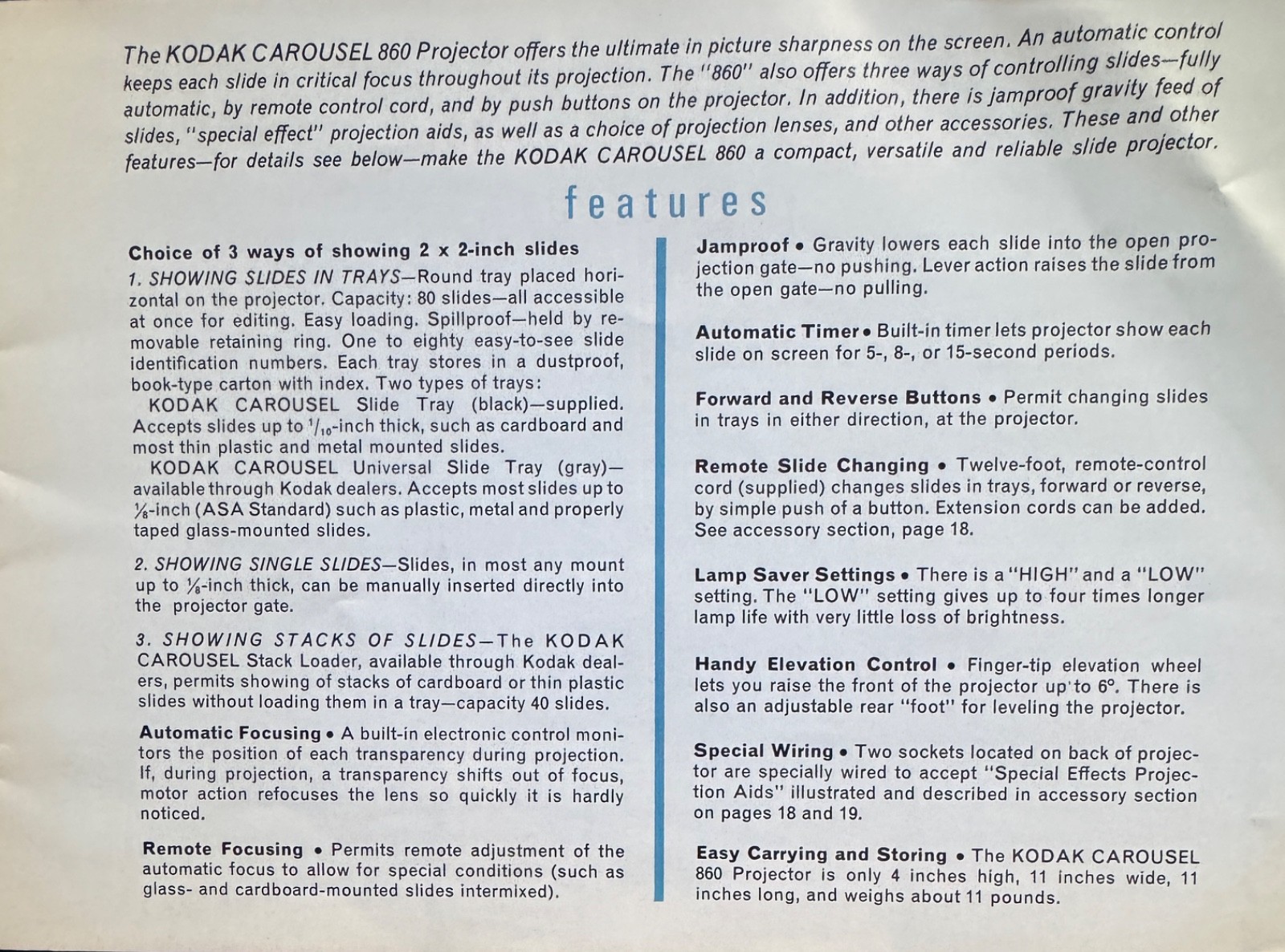 Kodak Carousel 860 AF Slide Projector, Carry Case and Buhl Superwide 1.4 Lens