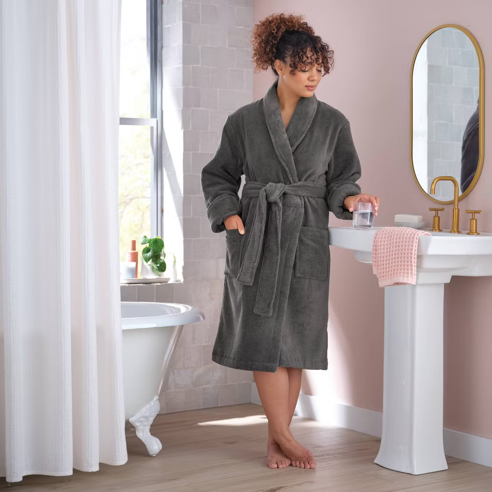 как выглядит S/M Spa Plush Bath Robe Dark Gray - Threshold фото