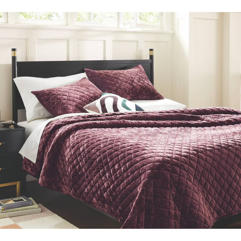 как выглядит King Luxe Diamond Stitch Velvet Quilt Berry Red - Threshold: OEKO-TEX Certified, фото