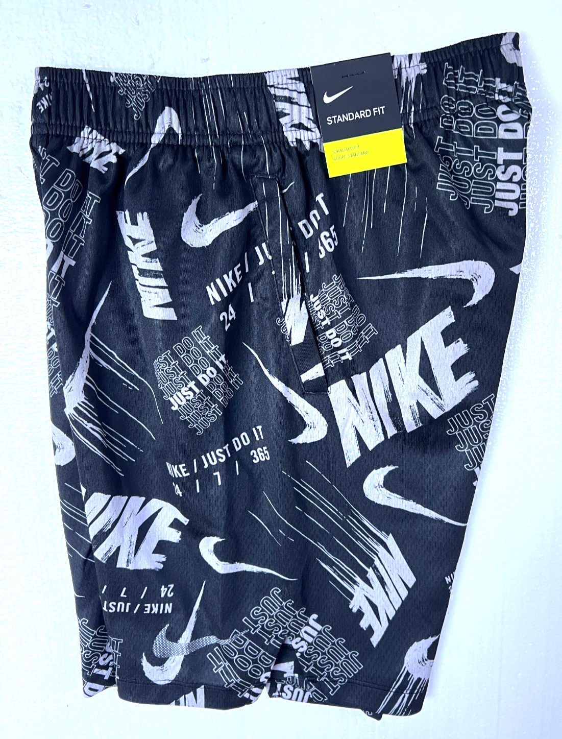 как выглядит Nike Big Boys Dri-Fit All Overt Print Training Shorts Black/White Size M BNWT фото