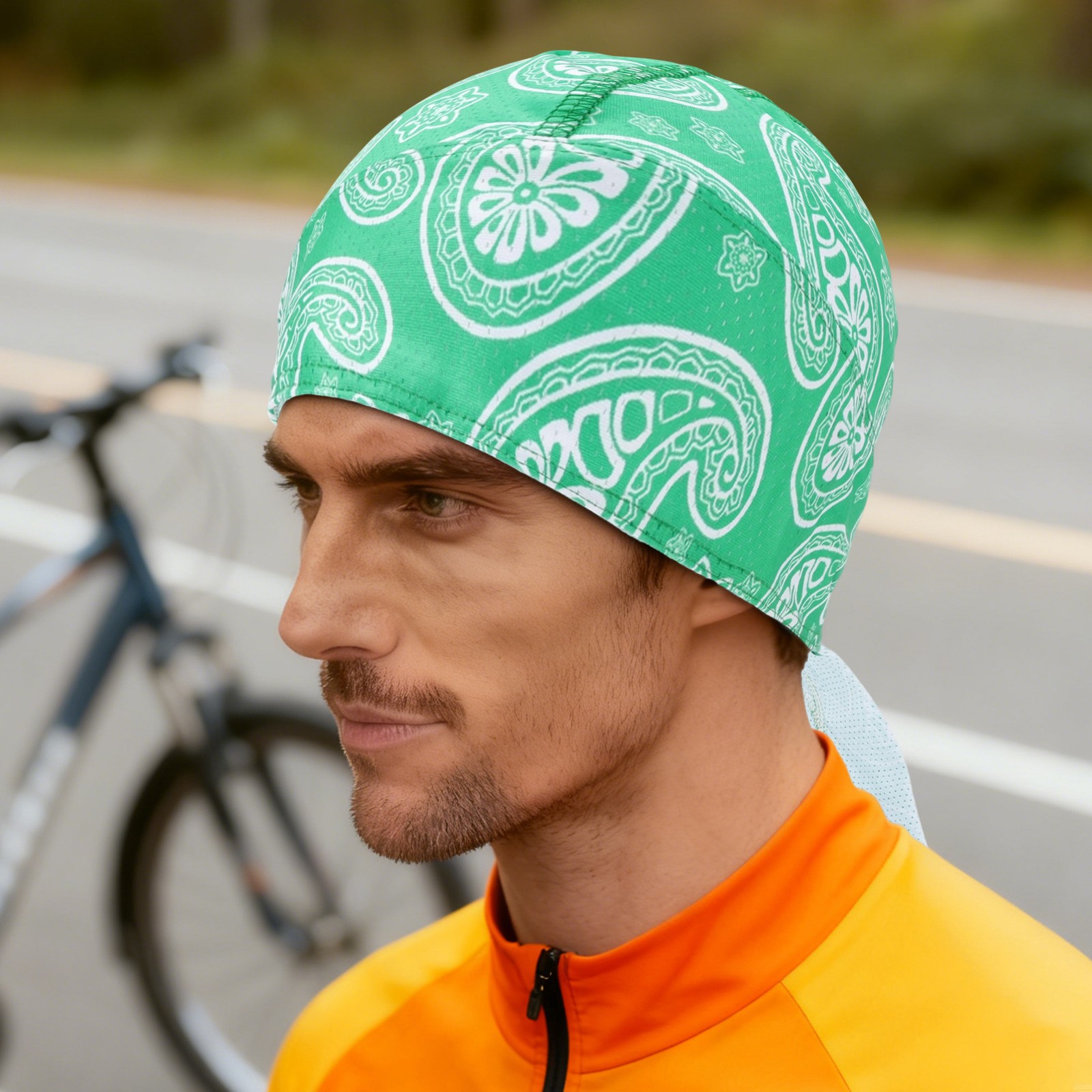 Cycling Hat Sweat Wicking Breathable Polyester Fabric Green 27x34cm 1 Pcs