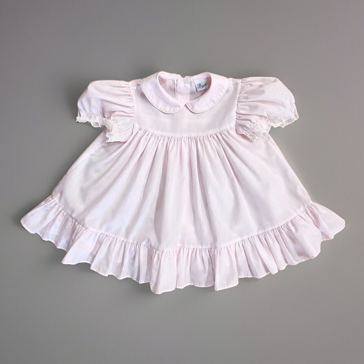 Vintage BRYAN Baby Girl Dress 18-24 Mo Party Pink Lace Short Sleeve