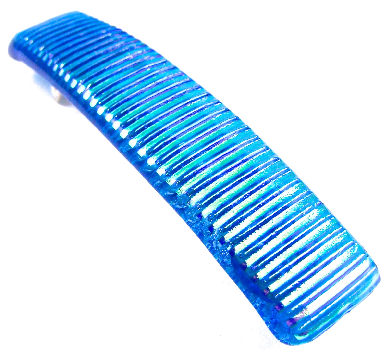 DICHROIC Glass BARRETTE Blue Teal Yellow Striped Rippled 3.5 90mm Hair Clip