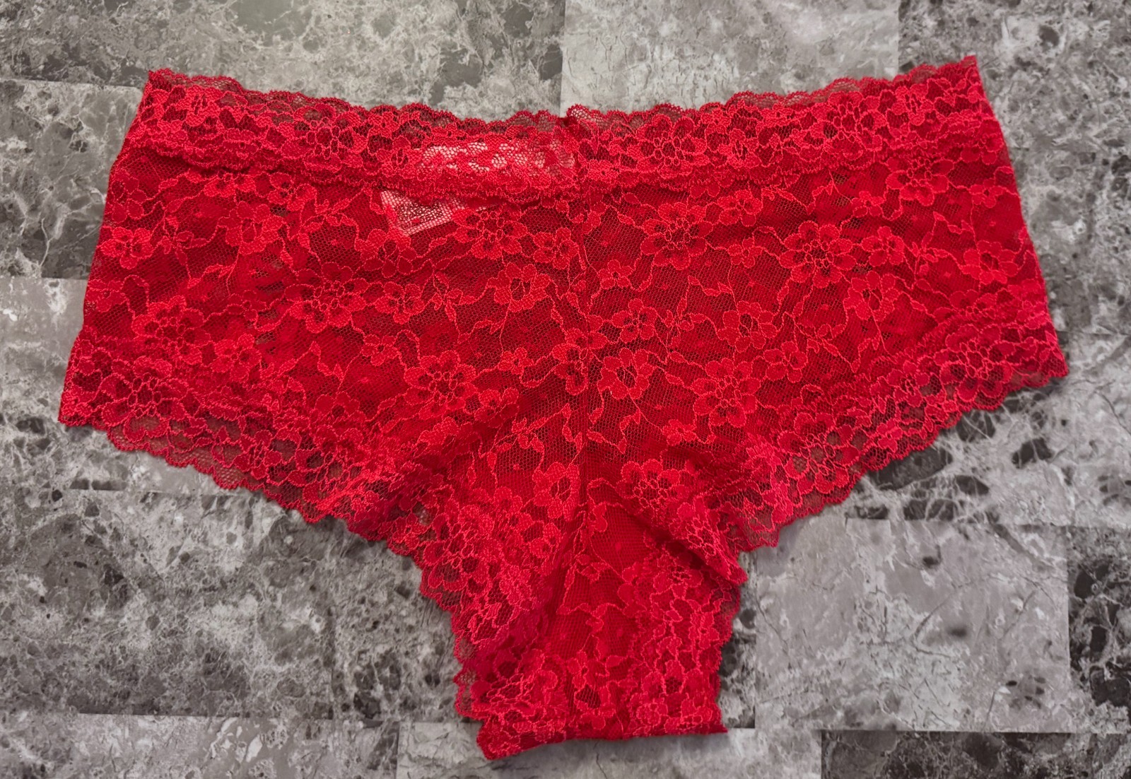 как выглядит NWT VICTORIAS SECRET RED FLORAL DOUBLE LACE UP STRAPPY LACIE CHEEKY PANTIES фото