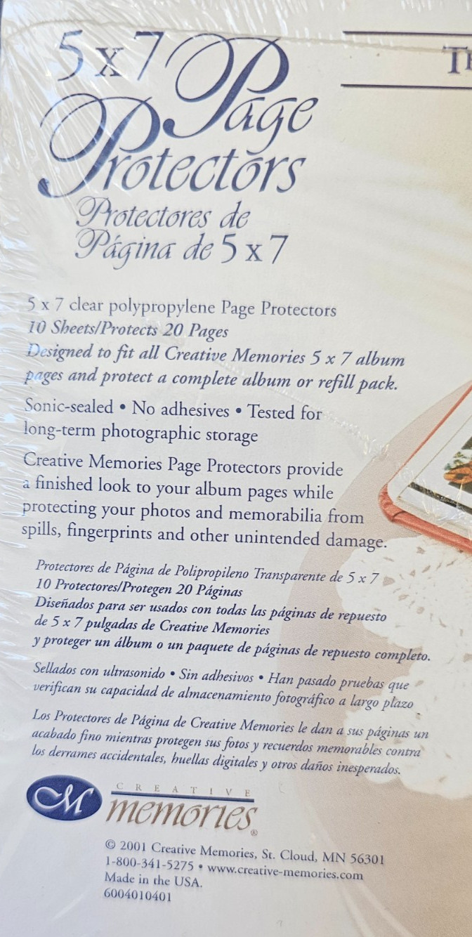 CREATIVE MEMORIES 5x7 White Pages Page Protectors 10 per package NEW SEALED