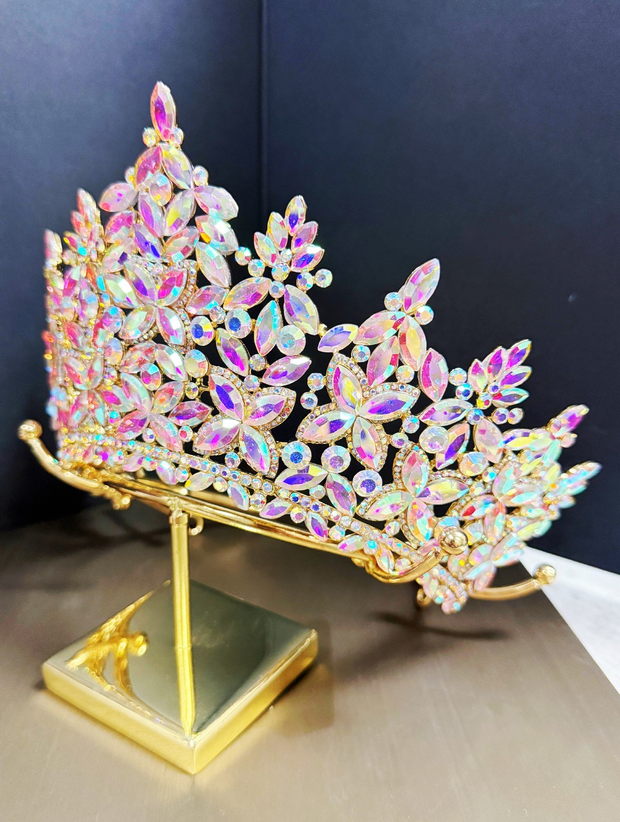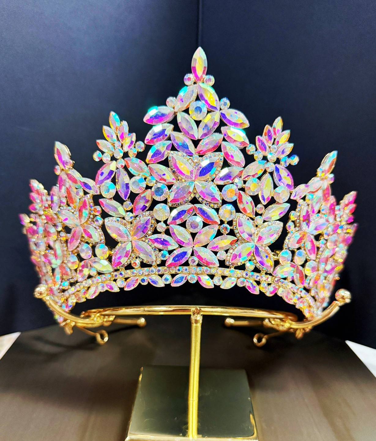 Quinceanera Crown, AB Crystal Crown, Crystal Bridal Tiara, Prom Gold Headdress
