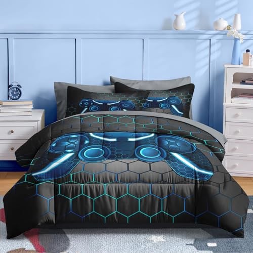 Juego de edred n de 7 piezas tama o ropa de cama retro con Queen Gamepad Azul 2