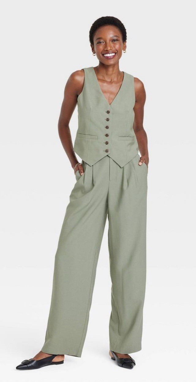 A New Day Women's Olive Green High Rise Regular Fit Pleat-Front Lightweight Sz 2