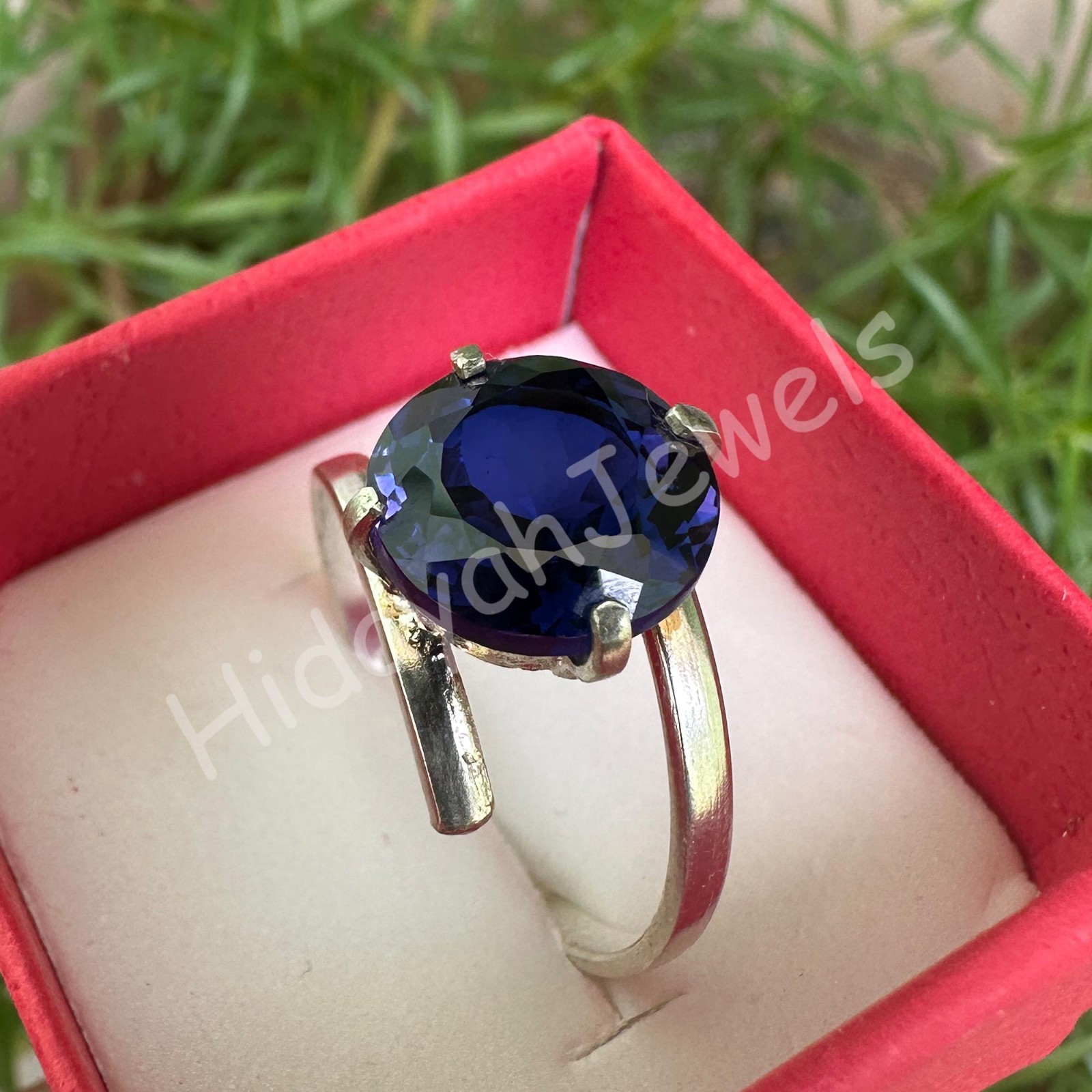 как выглядит 10 MM Natural Blue Sapphire Handmade Ring 925 Silver Unique Artisan Gem Jewelry фото